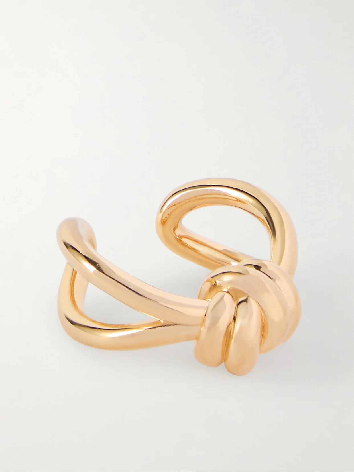 Polished for a gleaming shine, Bottega Veneta's ring is sculpted into the shape of its signature knotted hardware. It's been crafted in Italy from gold-plated silver and has an open-band design.