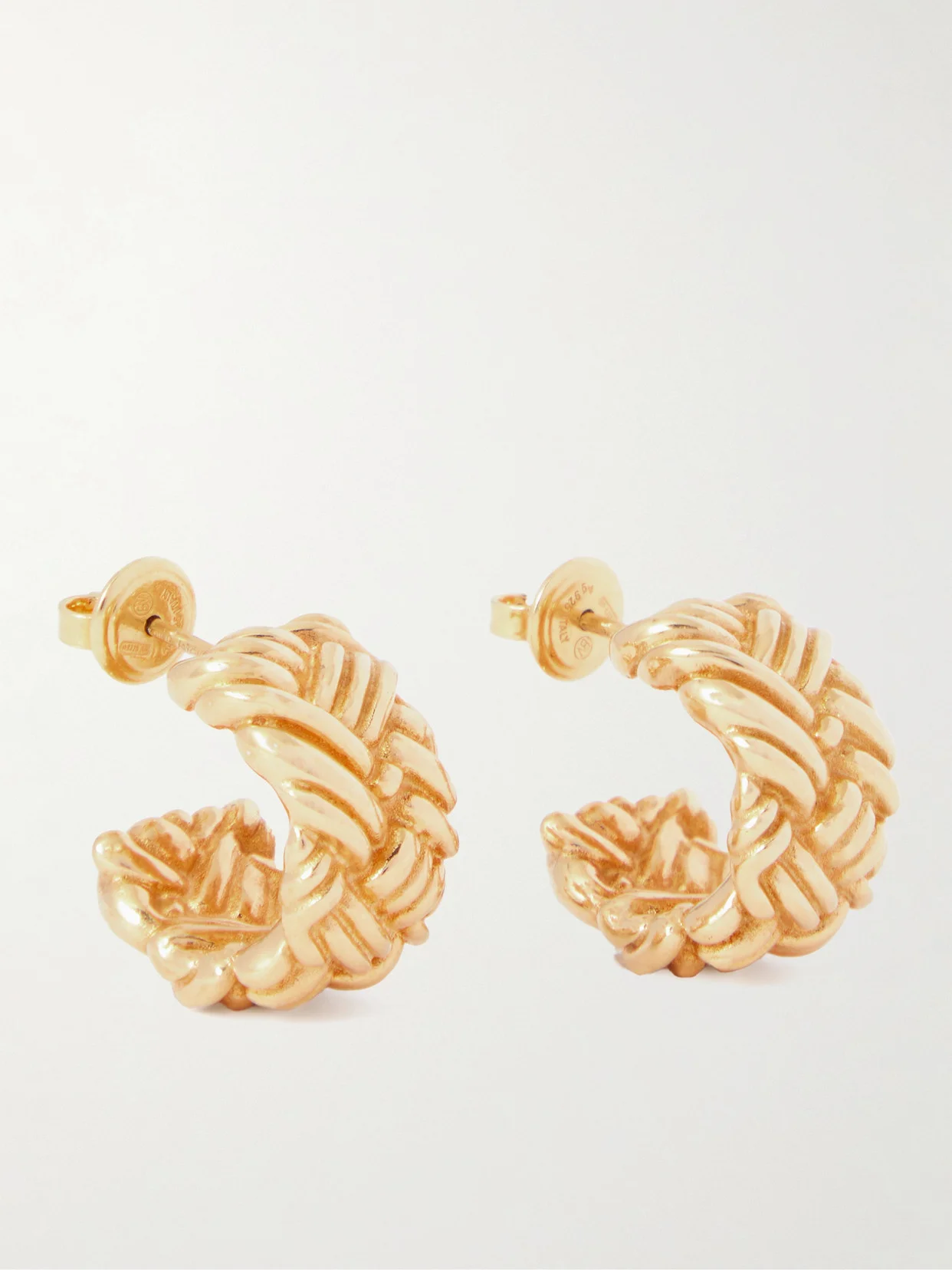 Bottega Veneta's hoops are modeled on the intrecciato technique, the process of weaving strips and a brand signature since its introduction in '75. This gold-plated sterling-silver pair has a chunky profile that'll make a standout impression.