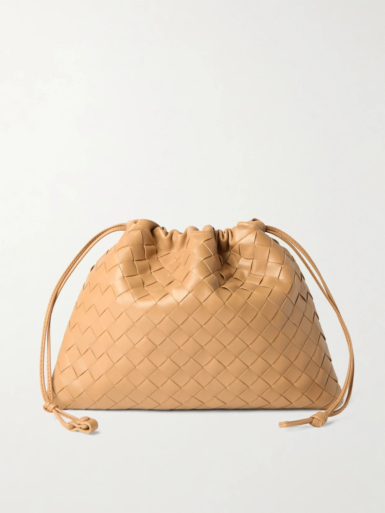 Bottega Veneta's pouch is hand-woven from leather using the label's intrecciato technique, which is just as recognizable as any logo. It has a slouchy shape with drawstring ties and offers enough space inside for your phone, cardholder and keys. Lower-Impact Materials. This product is made using at least 50% lower-impact materials or ingredients. Find out more about our NET SUSTAIN criteria here.