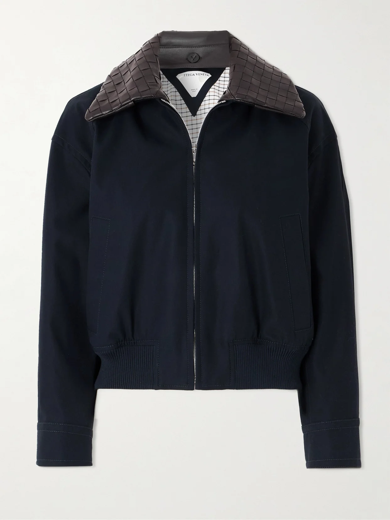 Intrecciato Leather-trimmed Cotton-twill Jacket