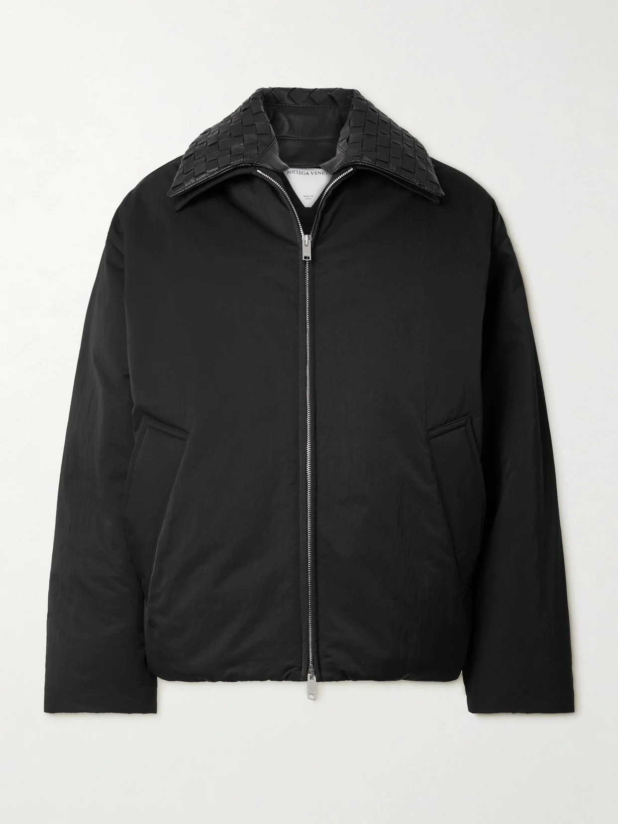 It's the collar of Bottega Veneta's jacket that makes it instantly recognizable - the strips of leather are woven using the signature intrecciato technique dating back to the '60s. It's otherwise made from shell filled with insulating down and feathers and has a billowy shape.
