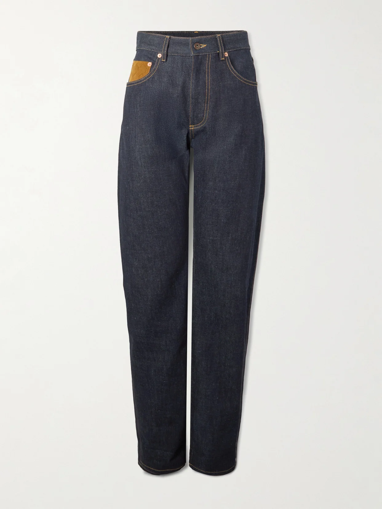 Intrecciato Suede-trimmed High-rise Straight-leg Jeans