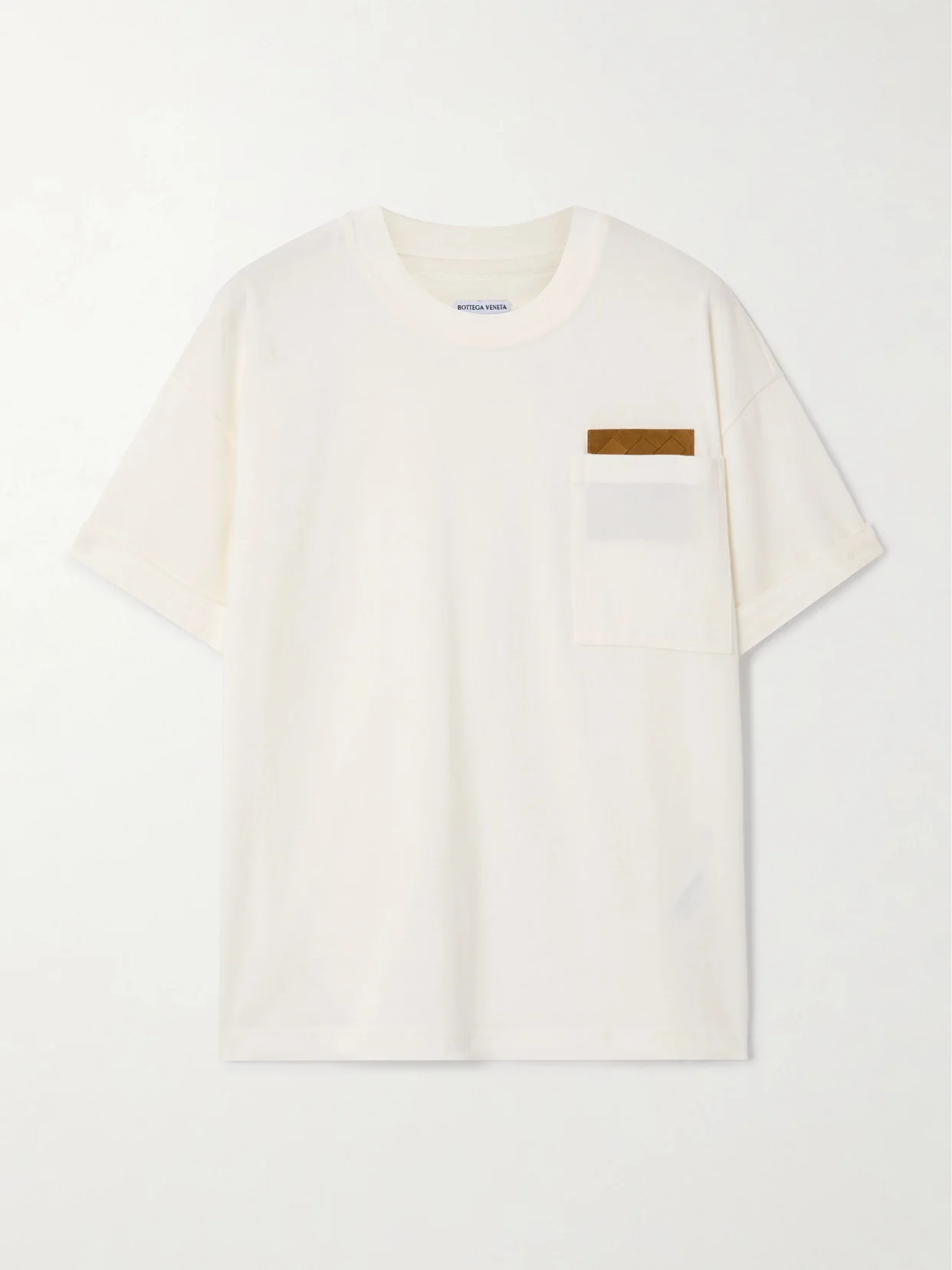 For Bottega Veneta, quality is in the details. This T-shirt is cut for a boxy profile from soft organic cotton-jersey. The chest pocket is traced with a band of plush suede, woven using the time-honored intrecciato technique. Lower-Impact Materials. This product is made using at least 50% lower-impact materials or ingredients. Find out more about our NET SUSTAIN criteria here.