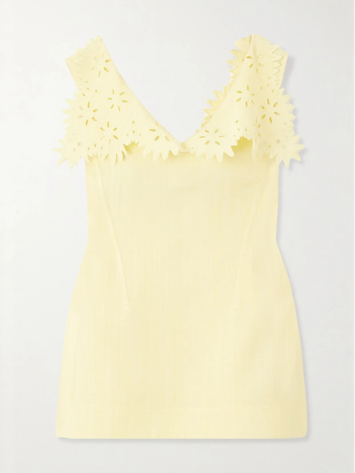 Bottega Veneta's Matthieu Blazy wanted his Spring '24 collection to feel transportive - the designer took inspiration from destinations around the world to evoke a sense of escapism. This top is made from broderie anglaise in sunny yellow with darted seams and a sweetly layered neckline. Pair it with the matching skirt.