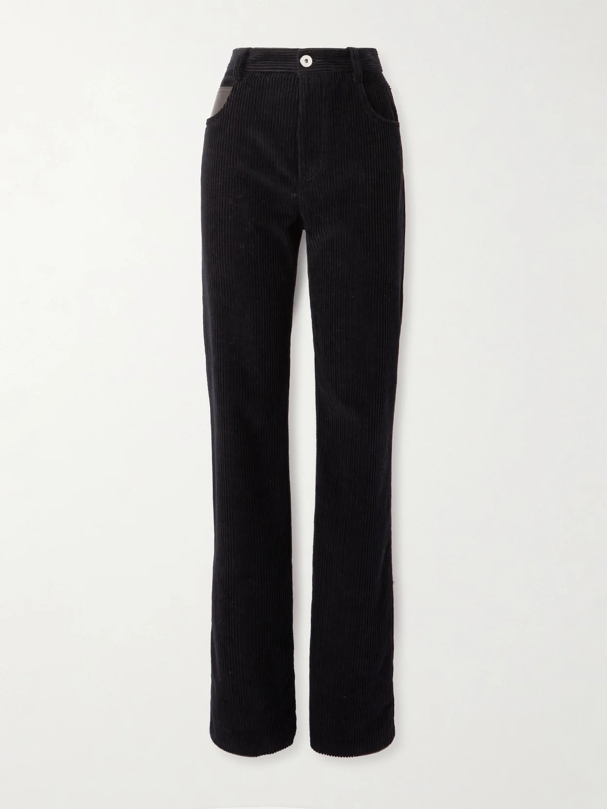 Leather-trimmed Cotton-corduroy Straight-leg Pants