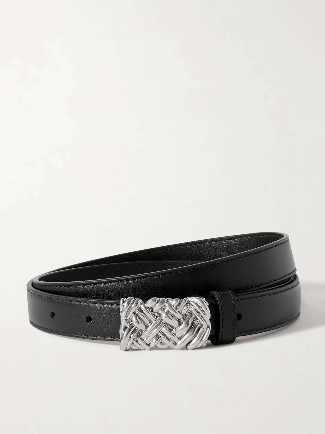 Bottega Veneta's 'Pleat' belt will elevate any outfit. It has been made in Italy from an incredibly supple hide and centered with an eye-catching silver-tone buckle.