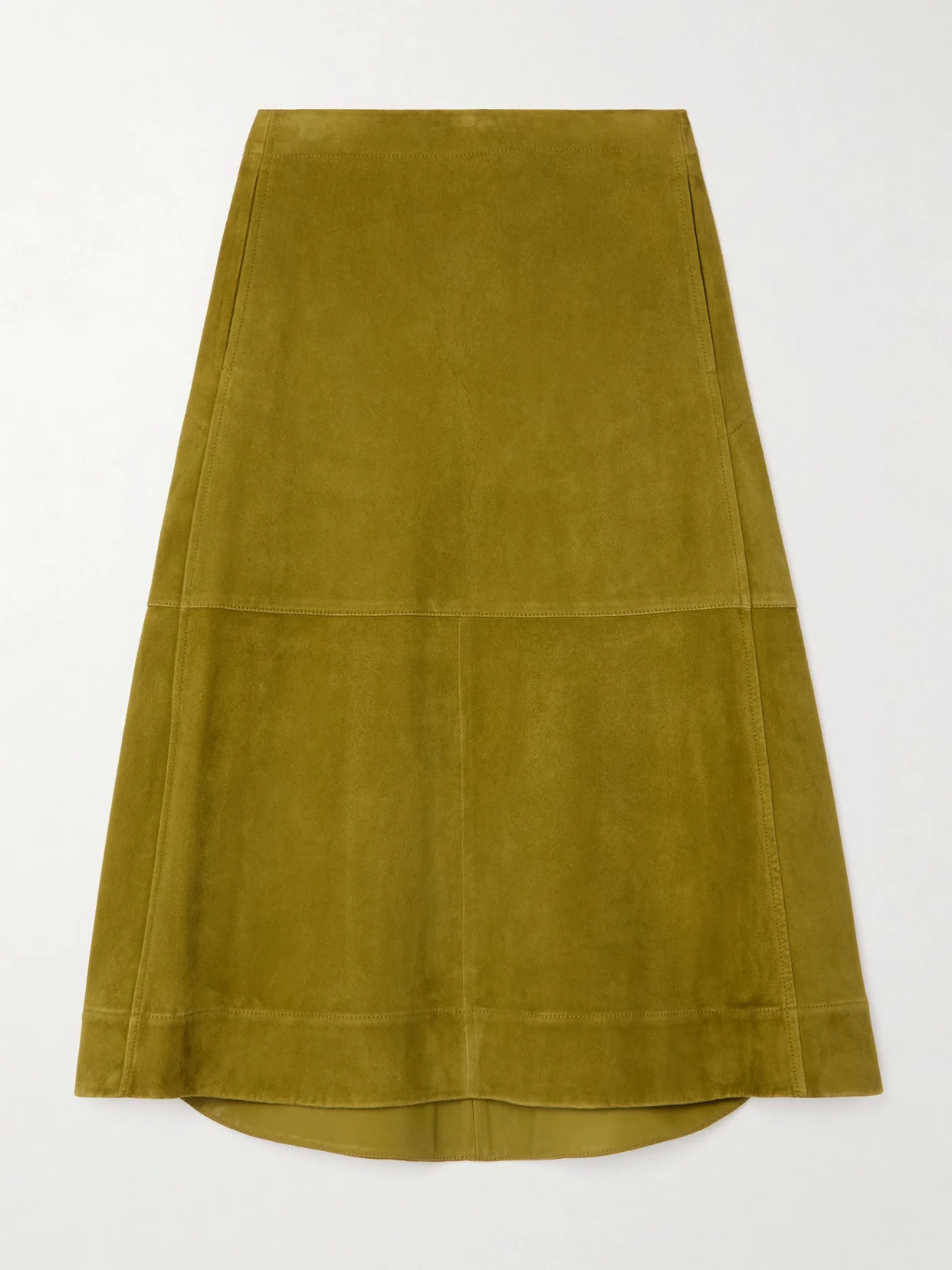 Bottega Veneta's midi skirt is pleated and split at the sides to give the A-line shape beautiful movement when you walk. It's made from panels of 'Marsh' suede and sits high on the waist.