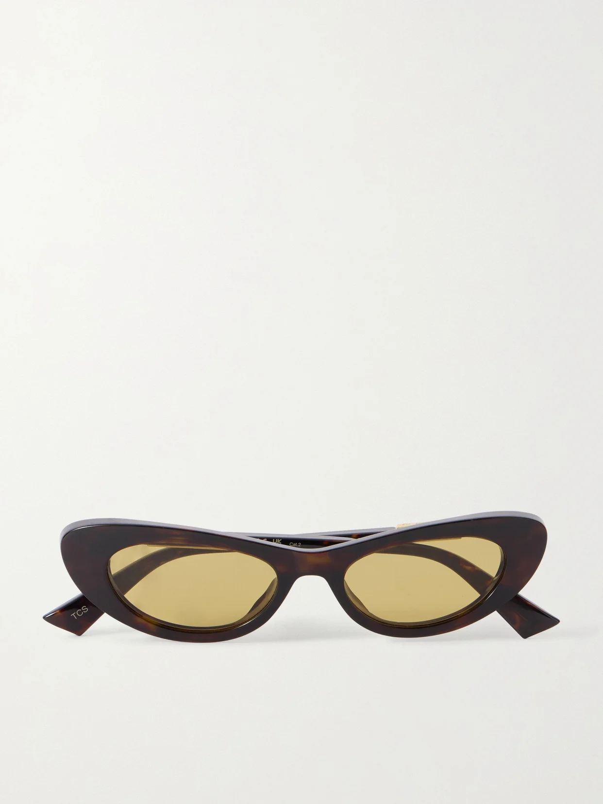 Bottega Veneta Eyewear's sunglasses feel slightly offbeat with their yellow lenses. They're made from tortoiseshell acetate in a slim cat-eye shape and have slender arms detailed with gold-tone 'Ribbon' hardware.