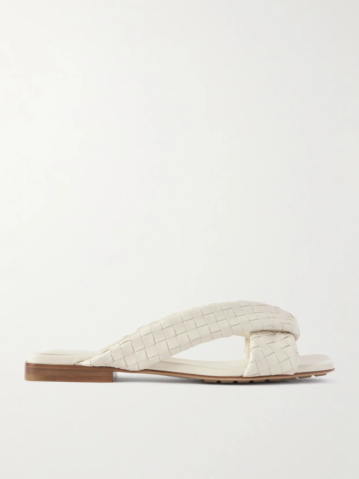 Bottega Veneta's sandals are part of the 'Riva' collection, which "re-imagines the classic mule with a dynamic, fluid twist". They've been made in Italy from strips of leather woven with the signature intrecciato technique and have square toes and slight heels. The pebbled soles ensure traction. Lower-Impact Materials. This product is made using at least 50% lower-impact materials or ingredients. Find out more about our NET SUSTAIN criteria here.