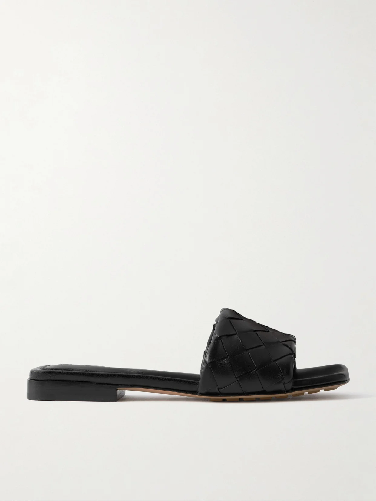 Bottega Veneta's signature intrecciato weave is as recognizable as any logo. These 'Riva' slides are meticulously made from supple strips of leather using the technique and have squared toes and slight heels. Lower-Impact Materials. This product is made using at least 50% lower-impact materials or ingredients. Find out more about our NET SUSTAIN criteria here.