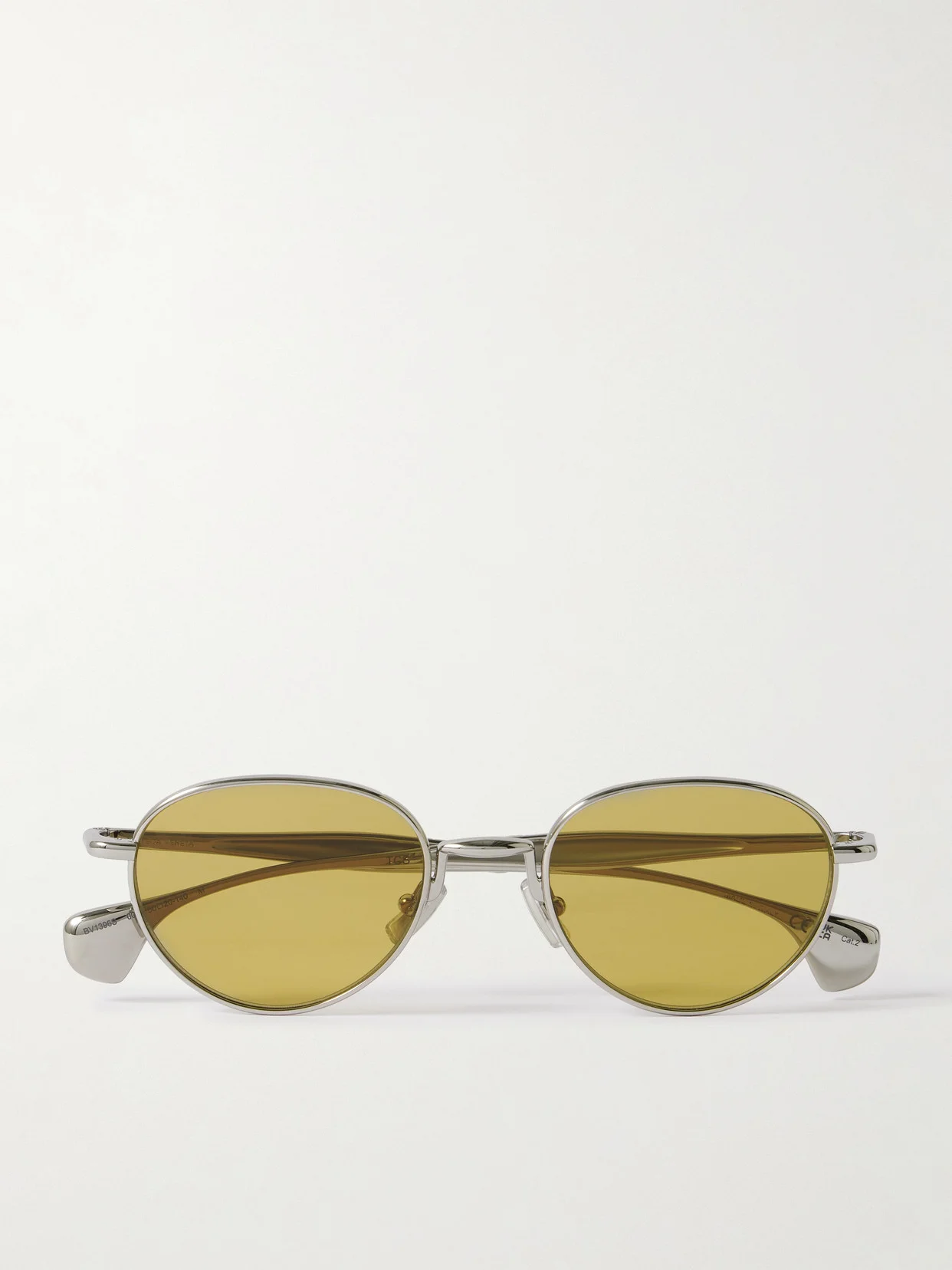 There's something to admire from every angle about Bottega Veneta Eyewear's sunglasses. They're crafted from silver-tone metal in a sleek profile with tapered arms and sculptural pebble-shaped tips. The logo is stamped discreetly on the sides.