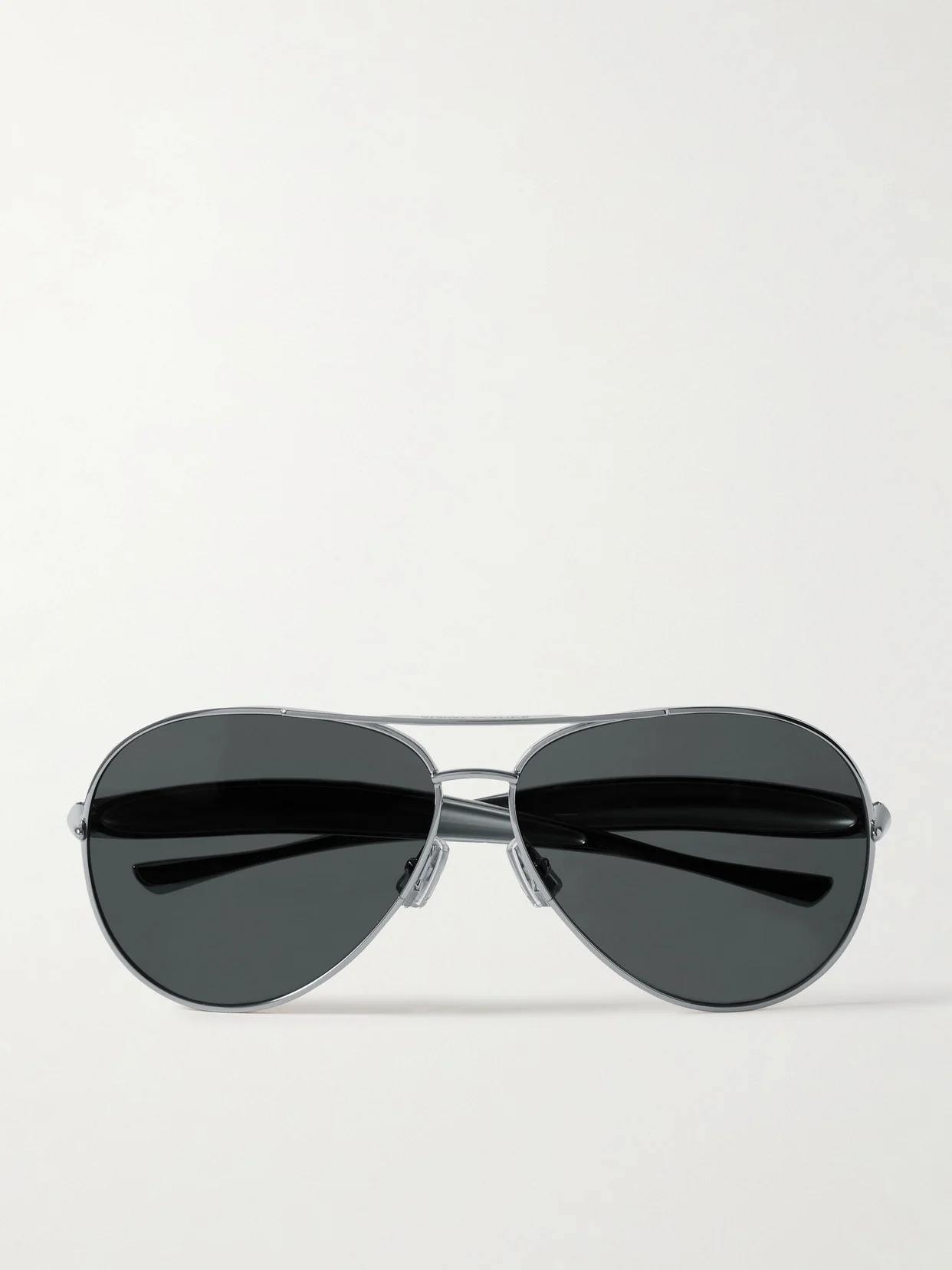 Bottega Veneta Eyewear's sunglasses are defined by the sculptural arms, which take their shape, and name, from a 'Sardine'. Made in Japan from silver-tone metal, they have aviator-style frames fitted with tinted lenses and are engraved with the brand's name across the top of the brow bar. Store yours in the accompanying case to keep them in good condition.