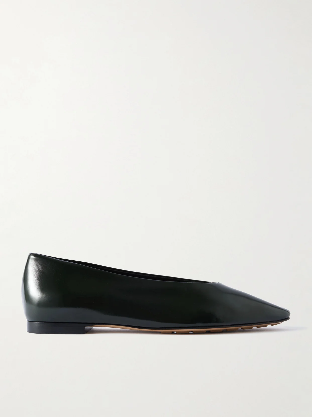 Bottega Veneta's 'Sofia' flats are timelessly elegant. Made from glossed-leather, they have a point-toe silhouette with a seam running down the center of the vamp. Subtly tracked soles offer plenty of grip.