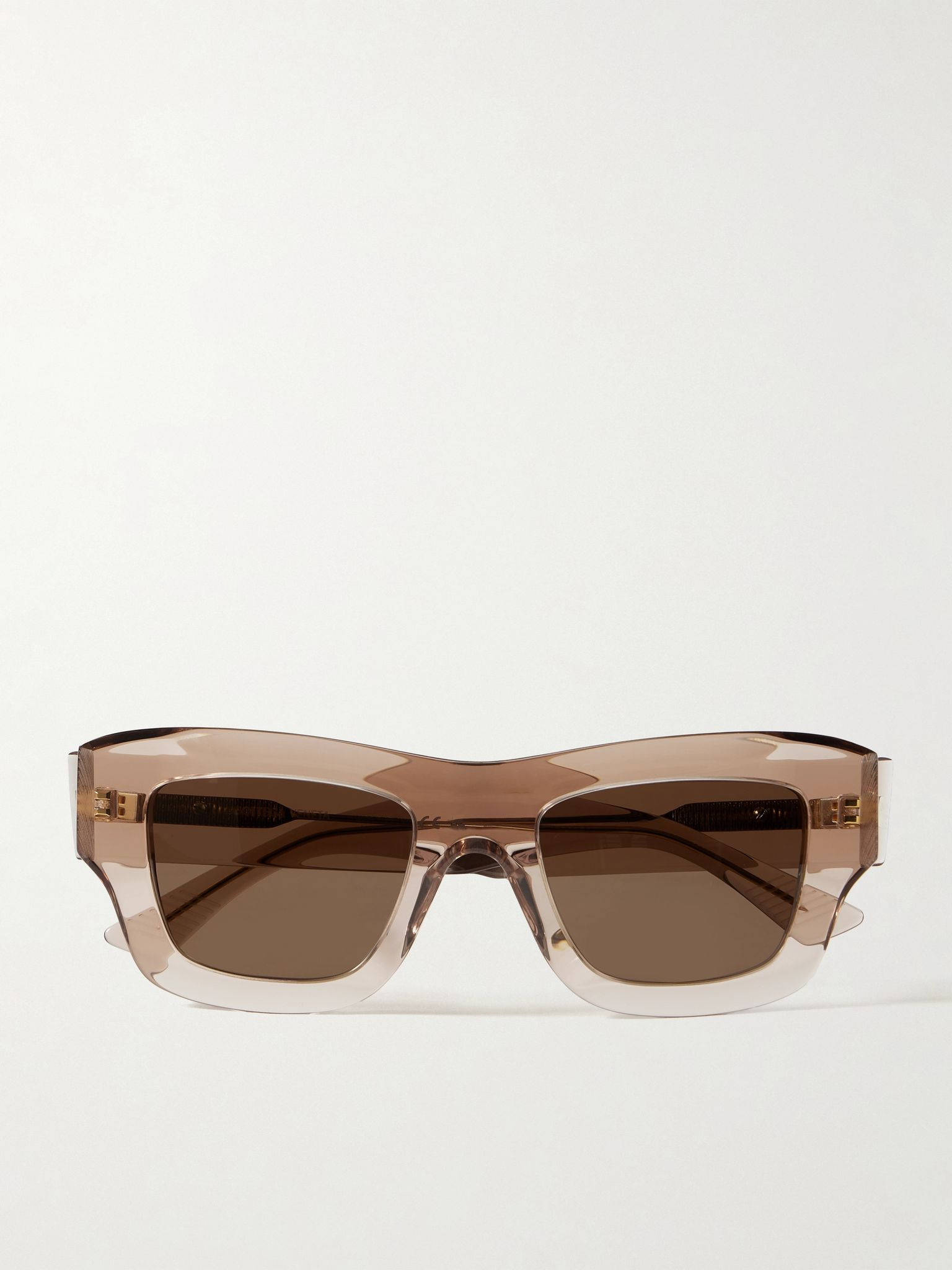 Designed with bold proportions, Bottega Veneta Eyewear's sunglasses are made from glossy acetate in a square shape. They're fitted with brown lenses and have signature gold-tone accents along the wide arms. Details & Care - Beige acetate - Comes with a case - 100% UV protection