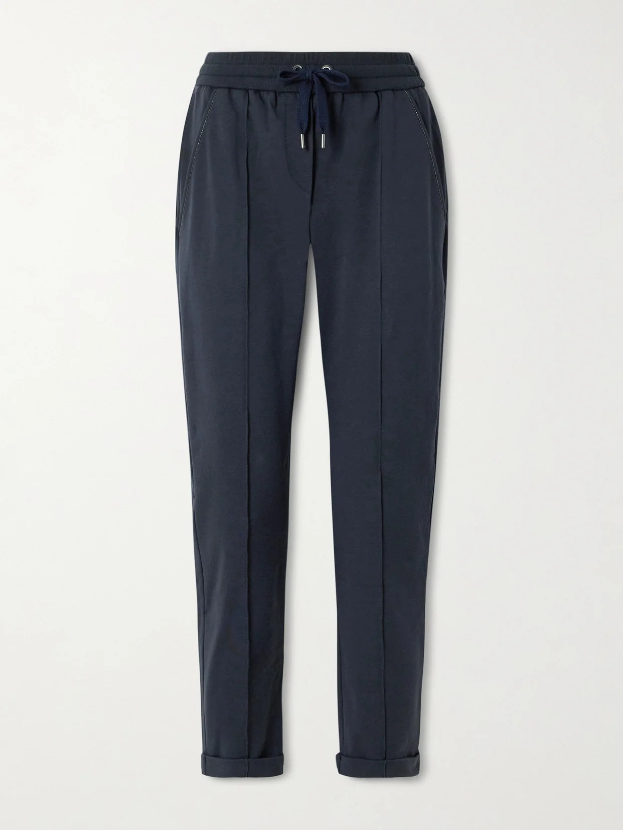 Brunello Cucinelli turns casual track pants into understated luxury. Perfect for low-key days, they're made from soft cotton-blend jersey in a tapered shape with glistening Monili beads at the pockets.