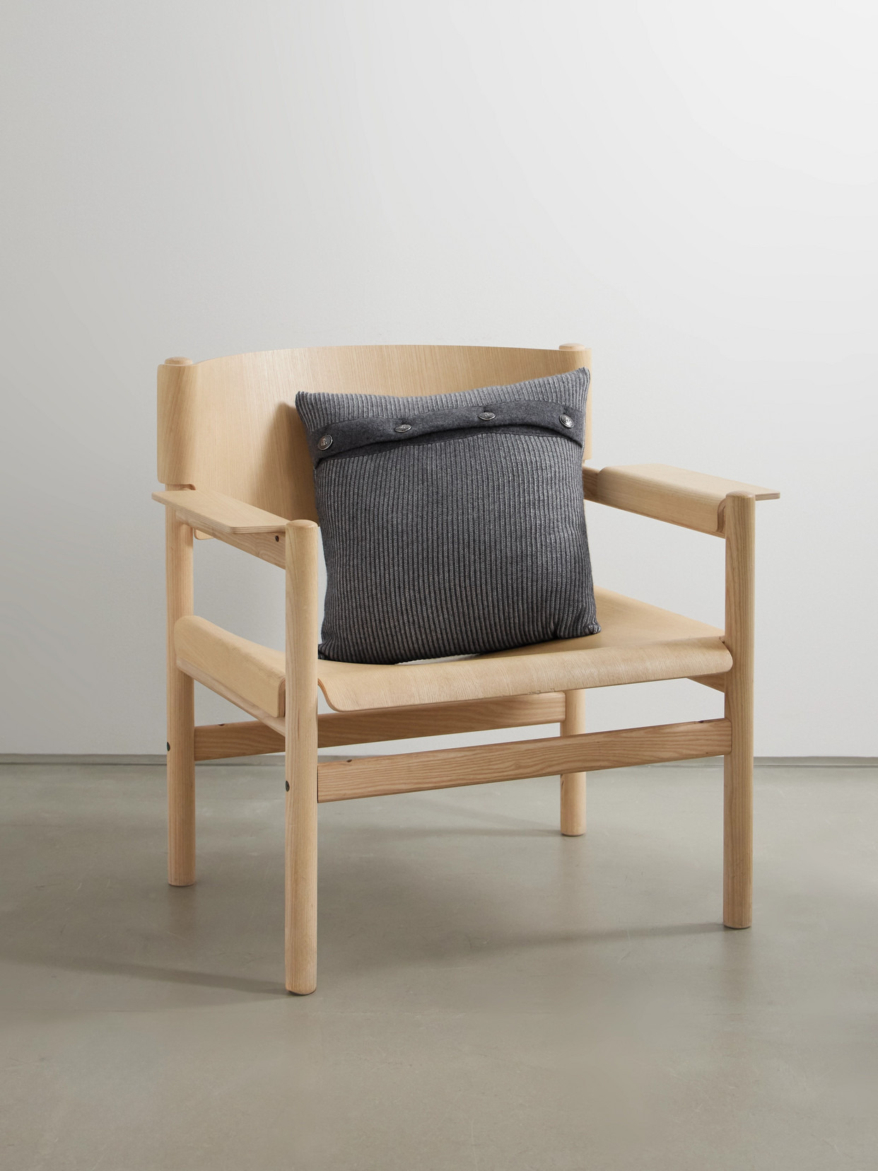 Brunello Cucinelli's cushion is made from cashmere using a vanise technique, where two shades of yarn are knitted together to create a melange effect. It's detailed with logo-crested buttons that not only add a regal feel but allow you to remove the cover easily.