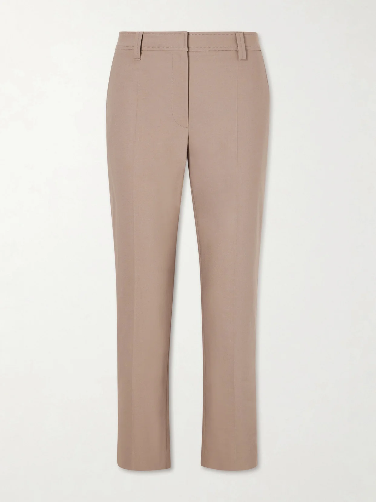 The cropped, tapered cut of Brunello Cucinelli's pants echoes the understated elegance the house is known for. They're made from crisp cotton-blend and tailored with neat, pressed creases to define the shape. Ground yours with flats or sandals.