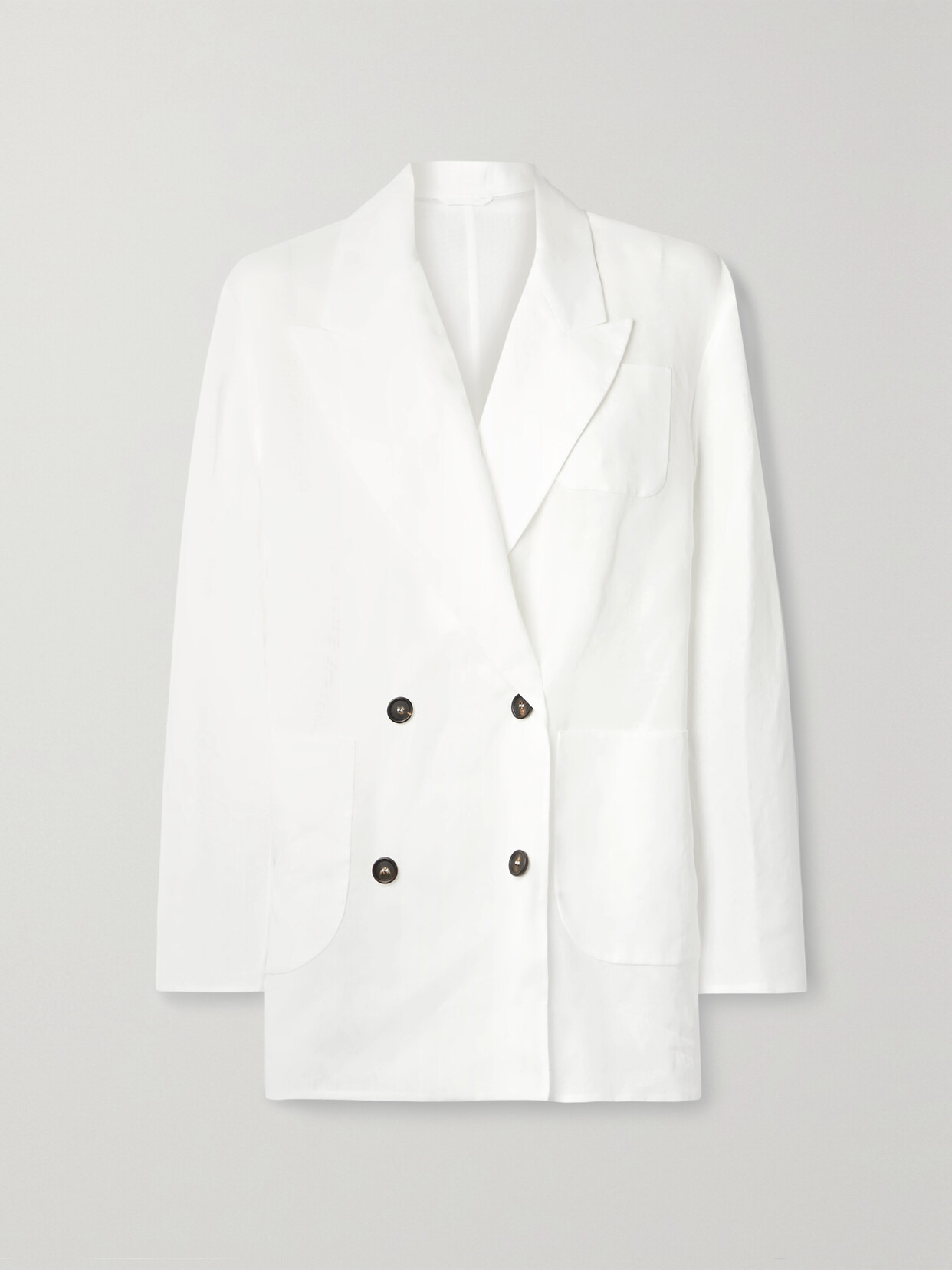 Brunello Cucinelli's blazer is unexpectedly made from layers of cotton-organza, making it particularly crisp and lightweight. Designed with a double-breasted profile, it has a relaxed shape with peak lapels and decorative buttoned cuffs. Style yours with tailored shorts and dresses.