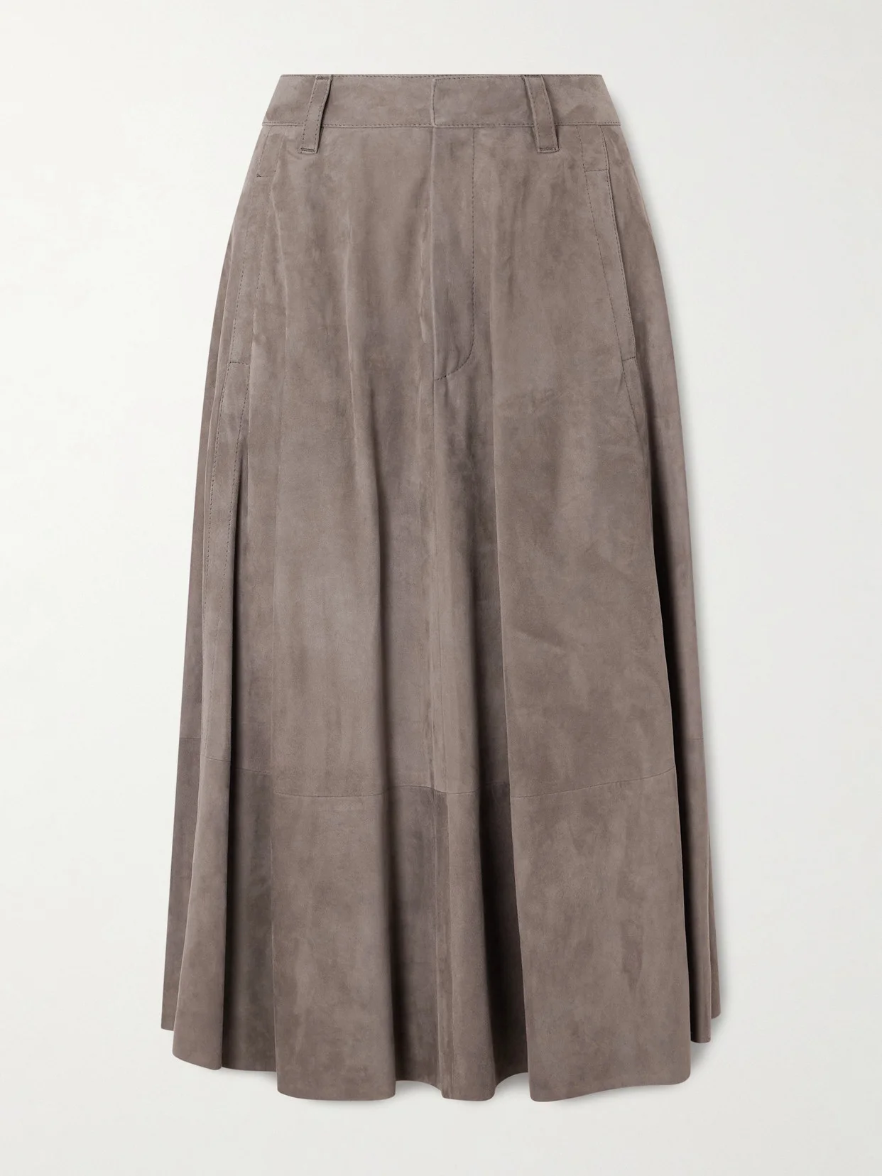 The epitome of understated luxury, Brunello Cucinelli's skirt embodies the house's dedication to artisanal elegance. Crafted in Italy from velvety suede, it has a flared circle shape that gracefully drapes to a midi hem. Functional and refined, it's fitted with side pockets and a concealed zip for a seamless finish.