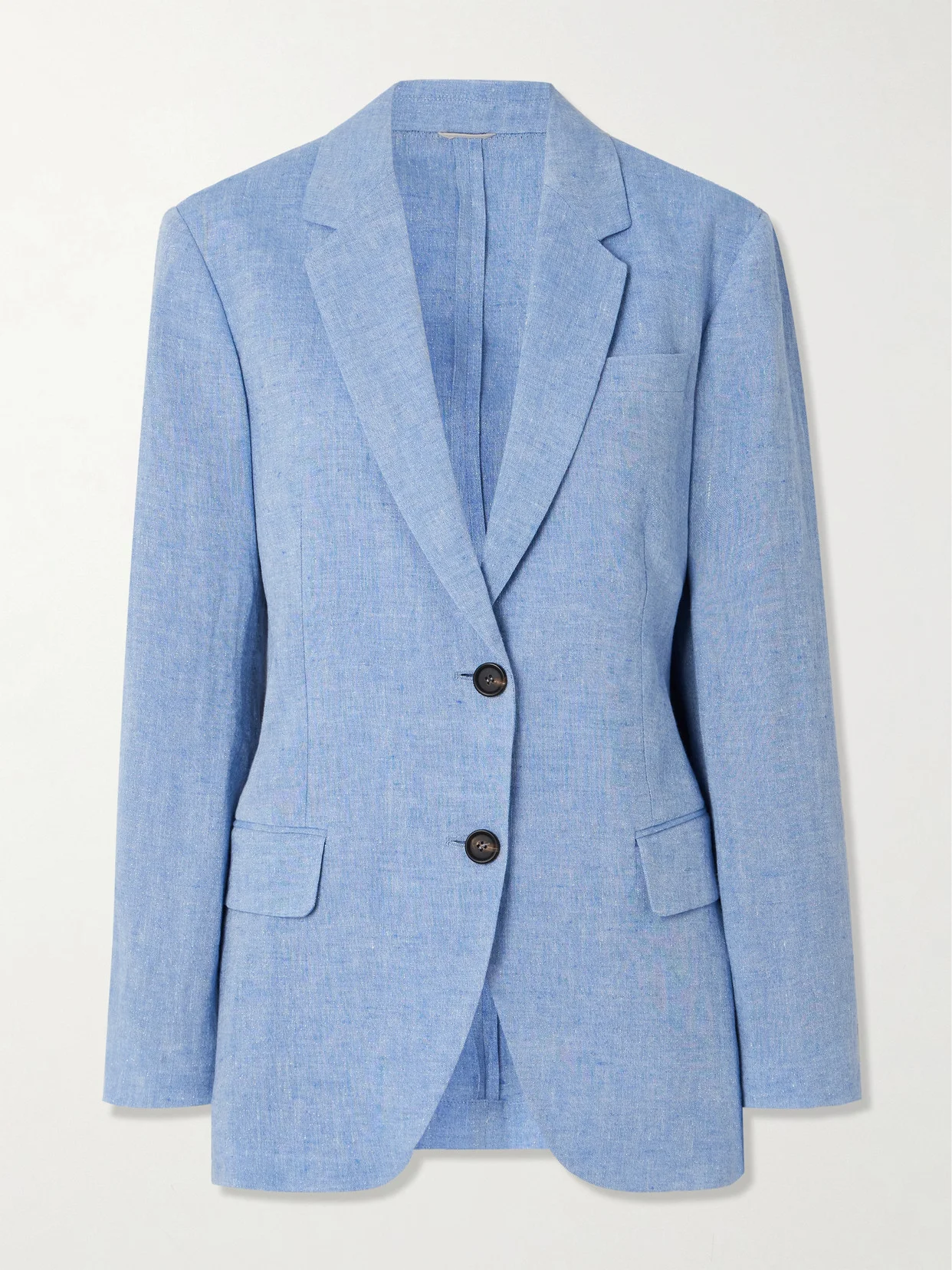 Tailored from airy melange linen-blend, Brunello Cucinelli's blazer is slightly loose in shape with unstructured shoulders and horn buttons closing the front. It's fully lined for a luxurious touch. Wear yours with the matching wide-leg pants in our edit.