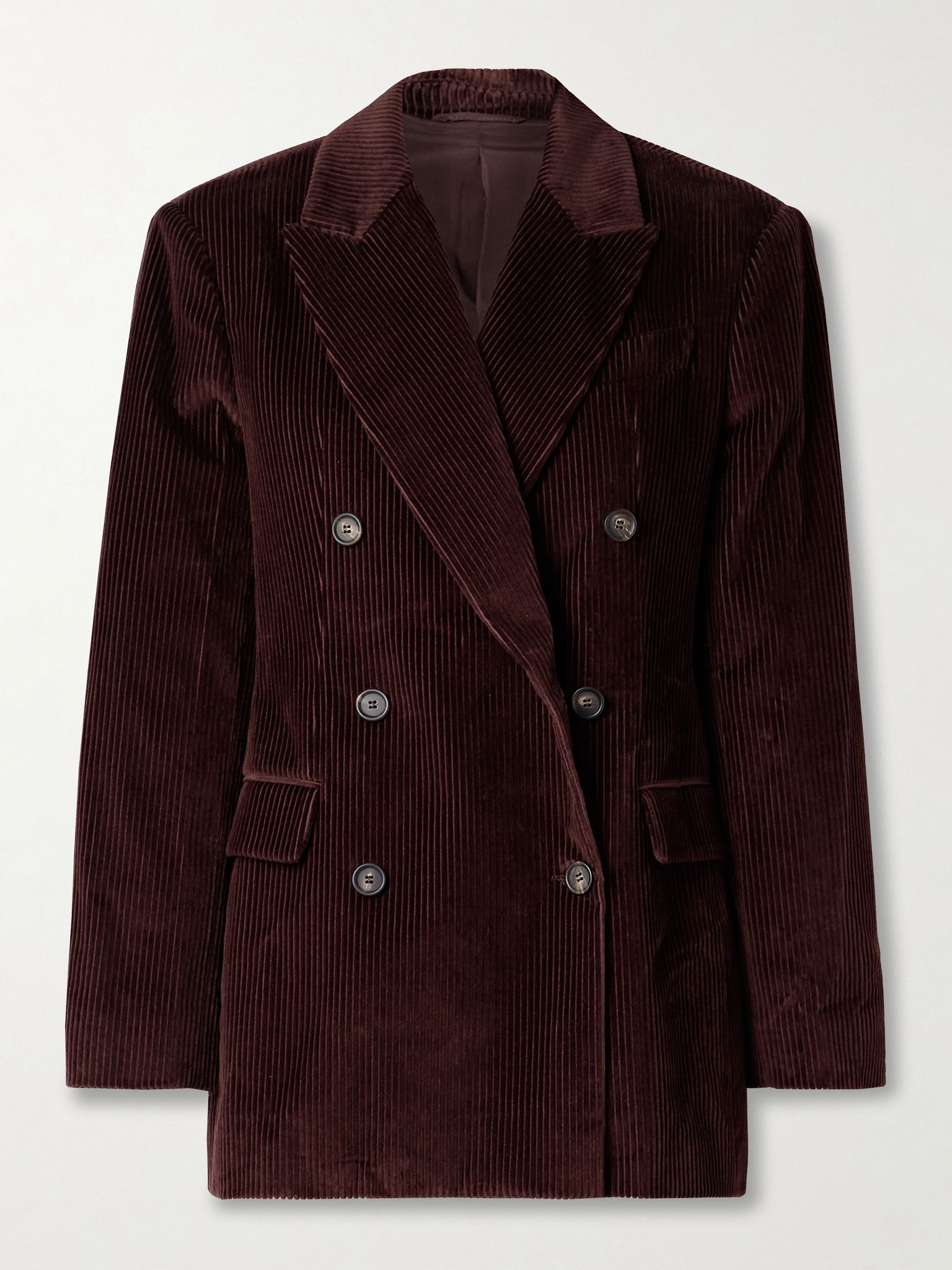 Oversized double-breasted cotton-corduroy blazer Burgundy