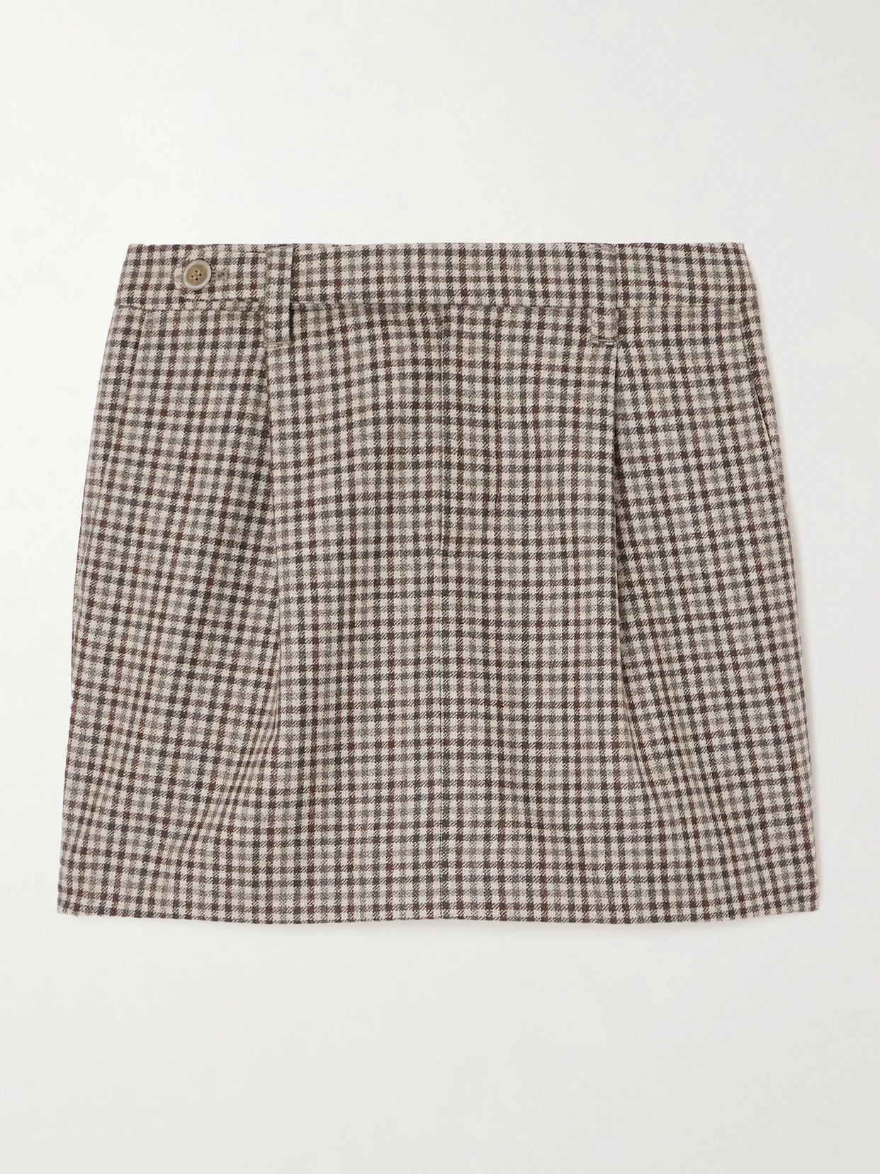 Brunello Cucinelli uses the finest materials to create pieces that balance sophistication with everyday ease. Reminiscent of vintage styles, this mini skirt is made from wool that's patterned with classic checks and pleated at the front. Wear yours with a crisp shirt or sweater.