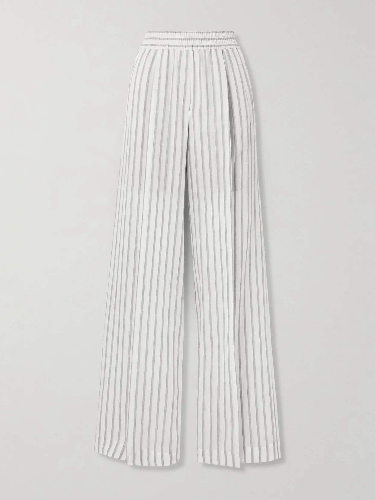 You'll find you get so much wear out of these Brunello Cucinelli's pants. Cool and relaxed, they're cut for a wide-leg fit from pleated cotton and silk-blend that's patterned with white and gray stripes. Style yours with tanks in the summer and knitwear come fall.
