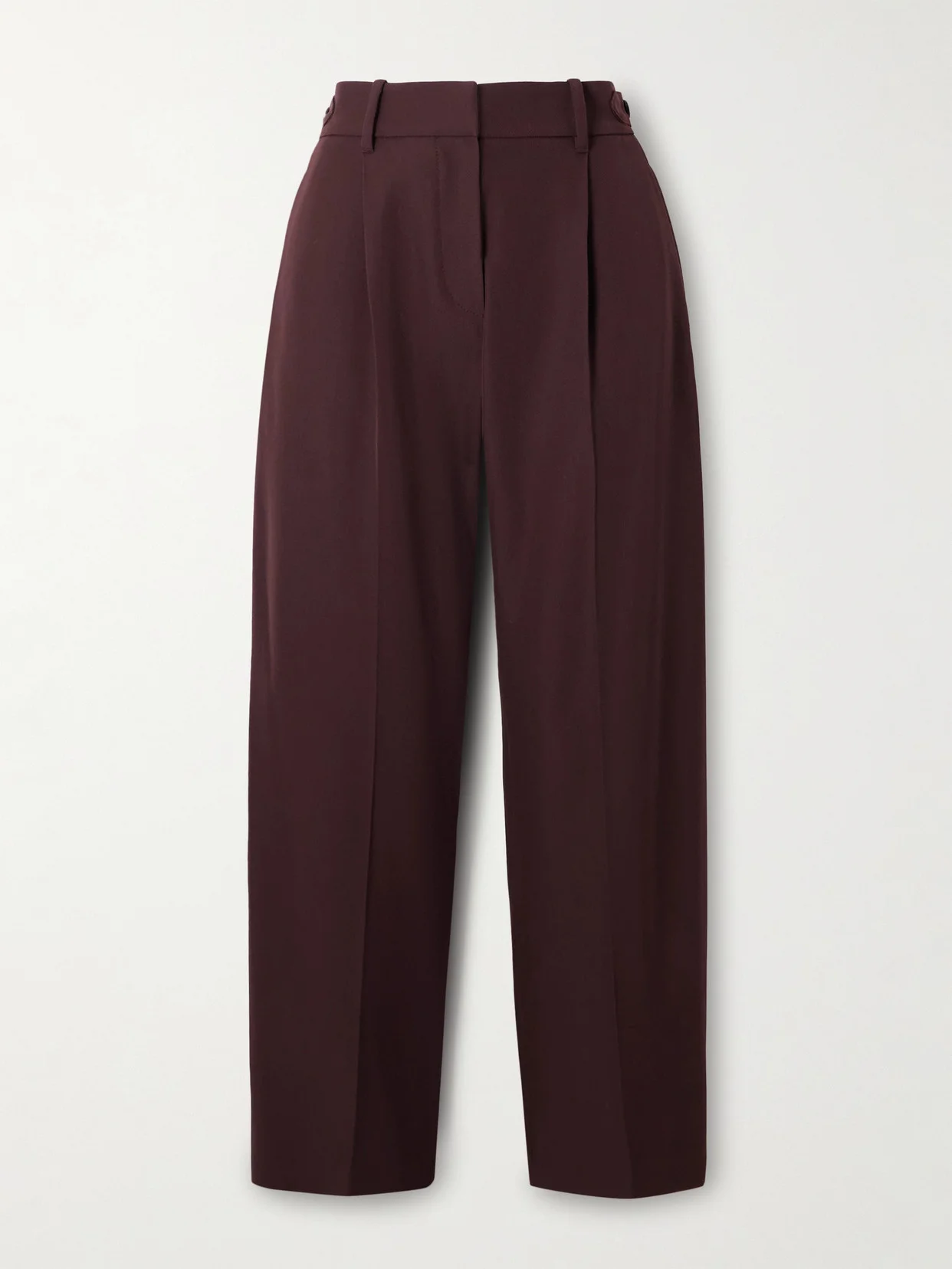 Brunello Cucinelli's pants are made from wool and cotton-blend twill in a versatile burgundy shade that adds richness to your typical tailoring. They have pleats through the tapered legs and a streamlined concealed placket.