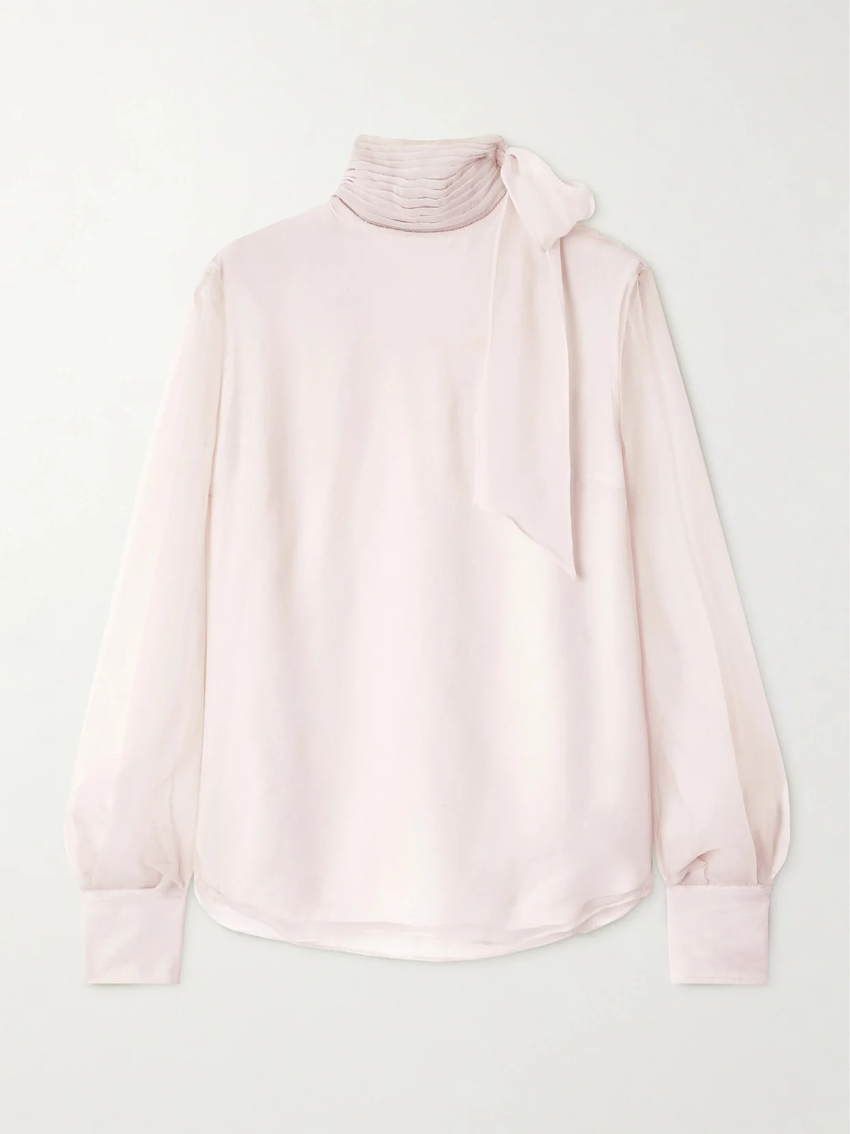 Brunello Cucinelli knows that there's beauty in simplicity. This blouse has been cut in Italy from sheer silk-organza and has an elegant pussy-bow neckline. It's lined through the body for coverage.