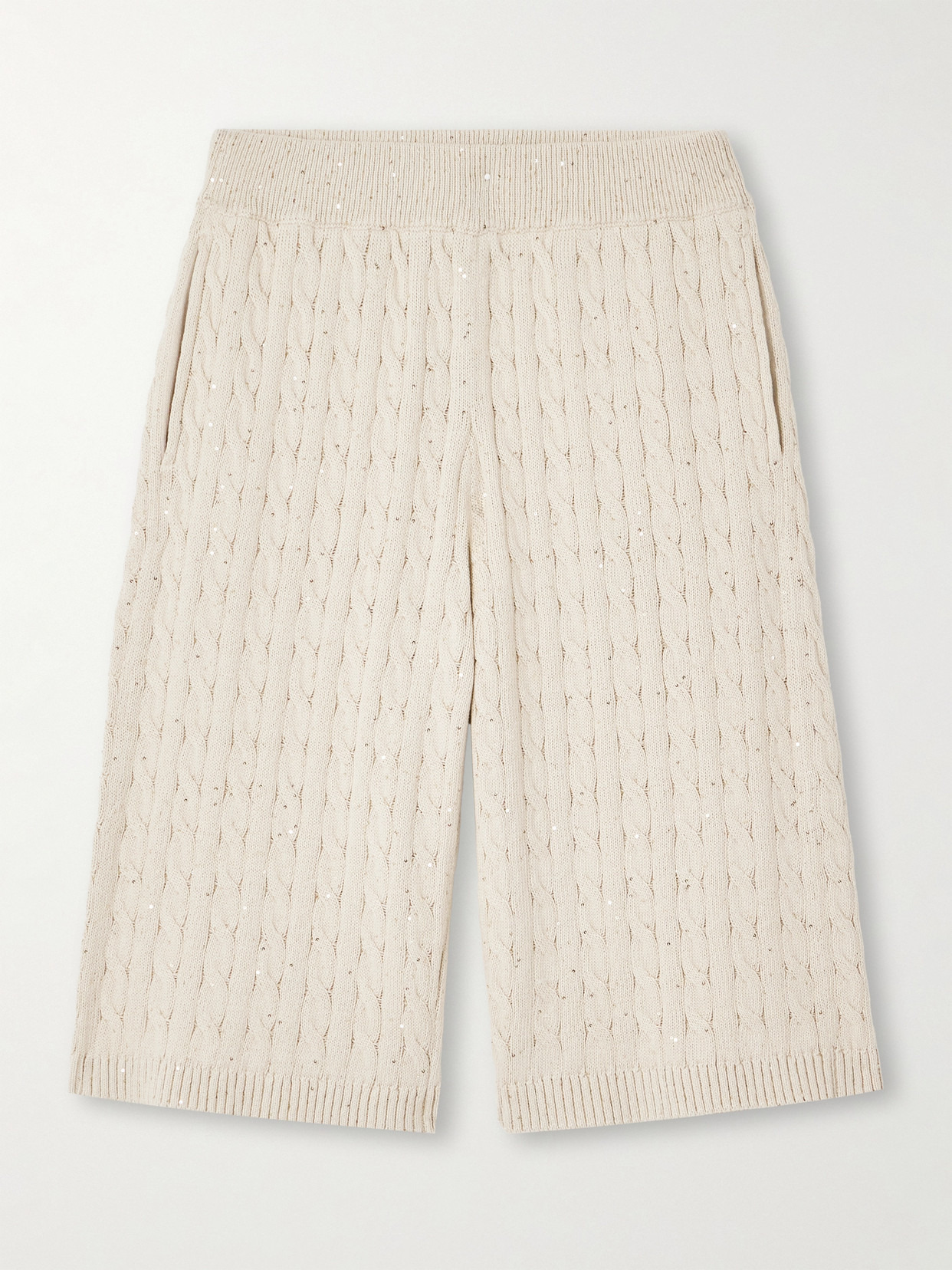 Sequin-embellished Cable-knit Cotton-blend Shorts
