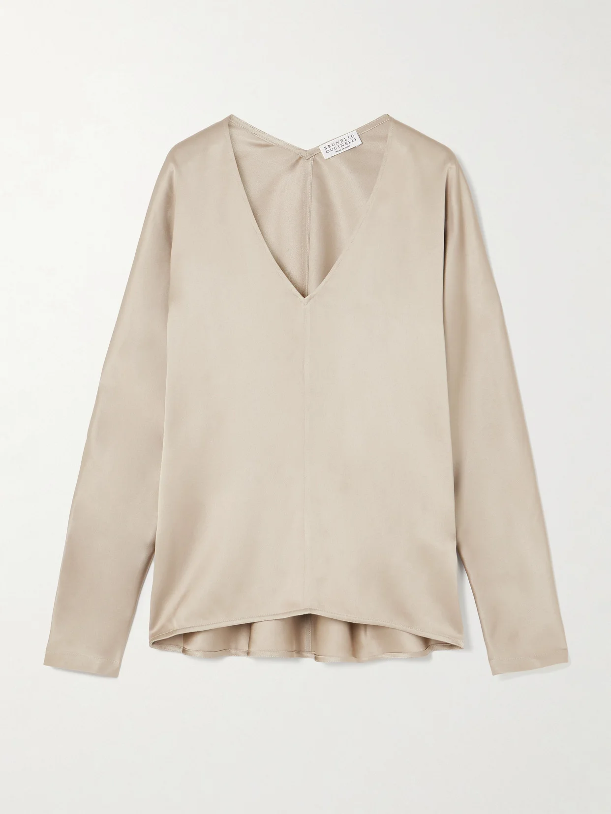 Brunello Cucinelli's blouse is simple and chic. It's cut from smooth silk-satin with a V-neck and long sleeves.