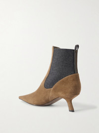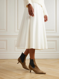 Brunello Cucinelli's elevated take on Chelsea boots is set on slanted 50mm heels for moderate lift. Made in Italy from velvety suede, they have comfortable elasticated panels and narrow squared toes. The signature Monili beads are arranged into a practical loop for easy on and off.