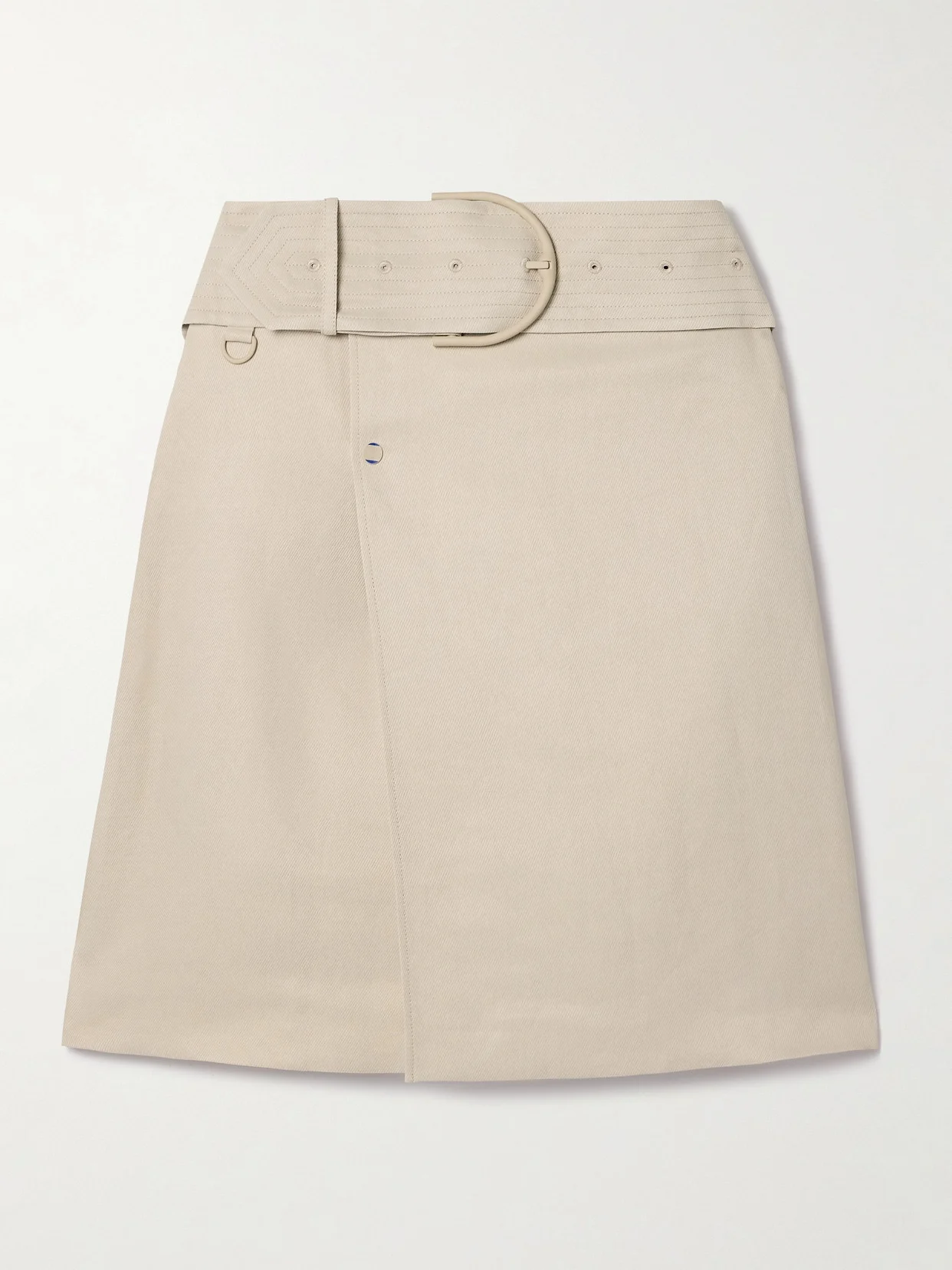 Burberry's skirt takes inspiration from the house's iconic trench coats. Made from ecru twill, it has an A-line shape with wide coordinating belt and a split at the back.