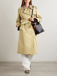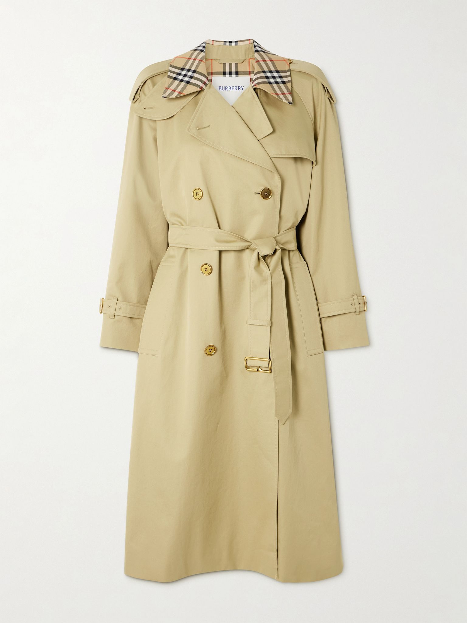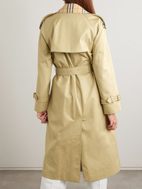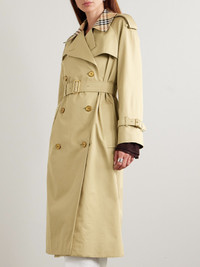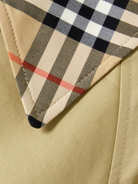 Trenches are Burberry's hero product, and this coat doubles down with a flash of signature tartan at the collar. It's tailored from cotton-gabardine with an elegantly fitted waist and flared skirt - a belt accentuates the shape. Size & Fit - Fits true to size, take your normal size - Tailored for a slightly loose fit, use the tie belt to cinch in at the waist - Mid-weight, non-stretchy fabric - Model is 177cm/ 5'10" and is wearing a UK 8 Model measurements: - Bust: 85cm/ 33” - Waist: 66cm/ 26” - Hip: 92cm/ 36” Details & Care - Multicolored cotton-gabardine - Button fastenings through double-breasted front - 100% cotton; sleeve lining: 100% viscose - Dry clean - Designer color: Hamper