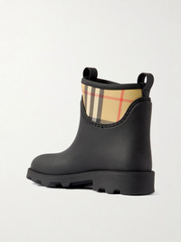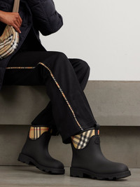 Burberry's boots are reminiscent of styles often worn to Britain's most iconic festivals. They've been made in Italy from water-repellent rubber with grippy lug soles and pull tabs. The checked panels are as recognizable as any logo. Size & Fit - Fits true to size, take your normal size - Italian sizing Details & Care - Rubber sole measures approximately 30mm/ 1 inch - Black rubber, multicolored nylon - Slip on