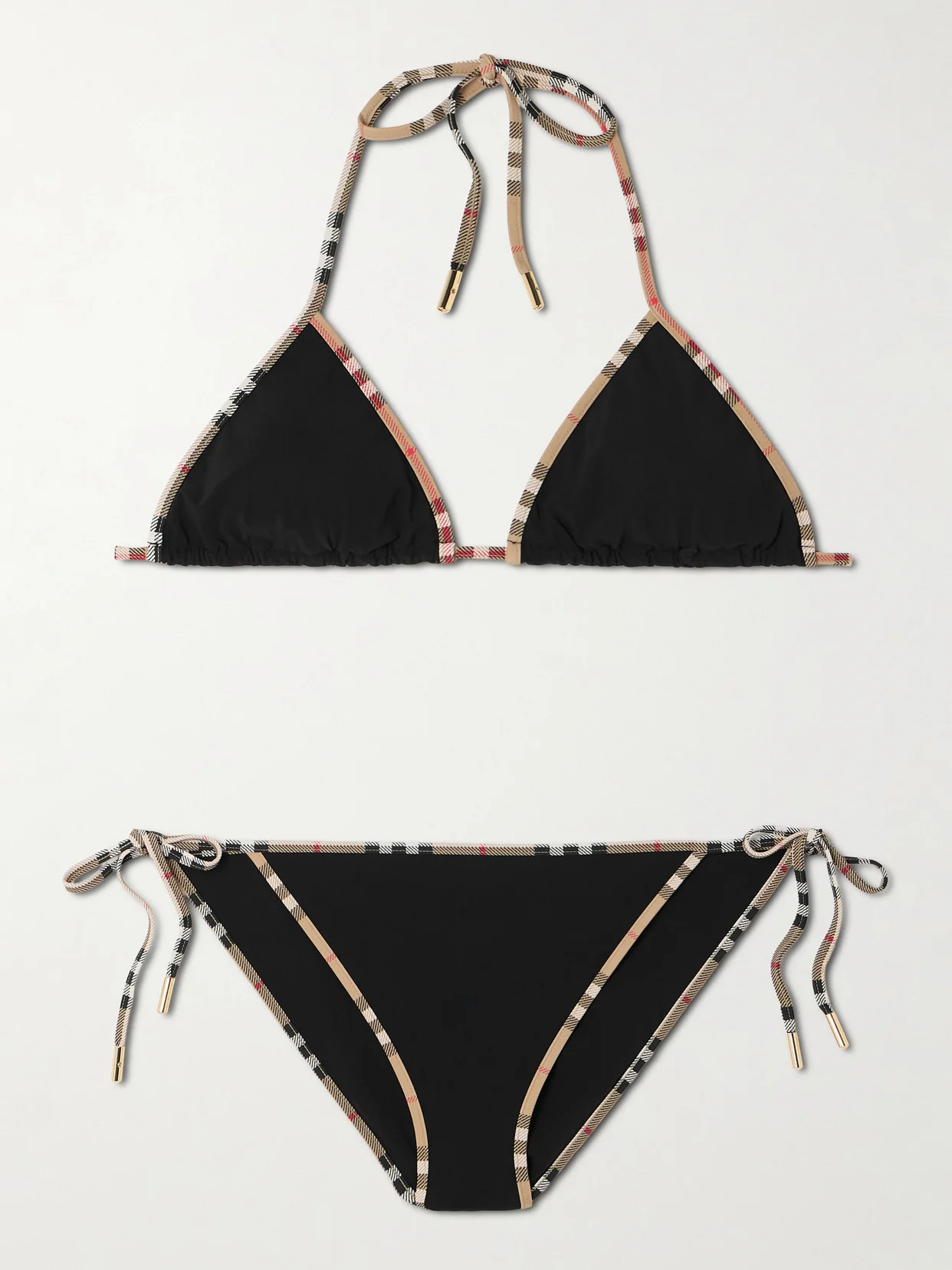 Traced with Burberry's iconic checks, this triangle bikini draws attention to the beauty of your skin. It's cut from smooth stretch fabric with removable padded cups for lift and support and finished with self-tie fastenings. The halter neck keeps tan lines to an absolute minimum.