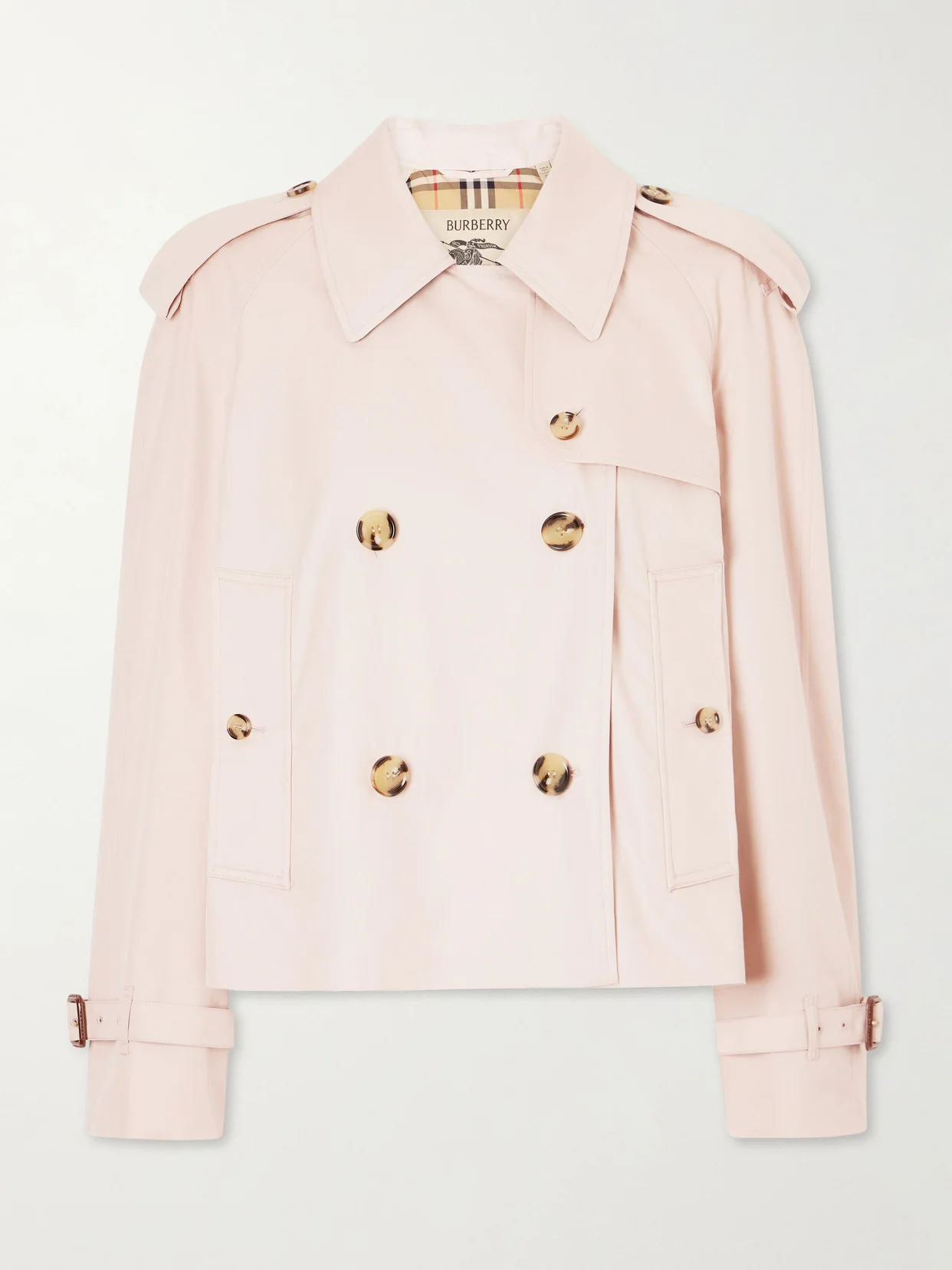 Haltye Double-breasted Belted Cotton-gabardine Cropped Trench Jacket