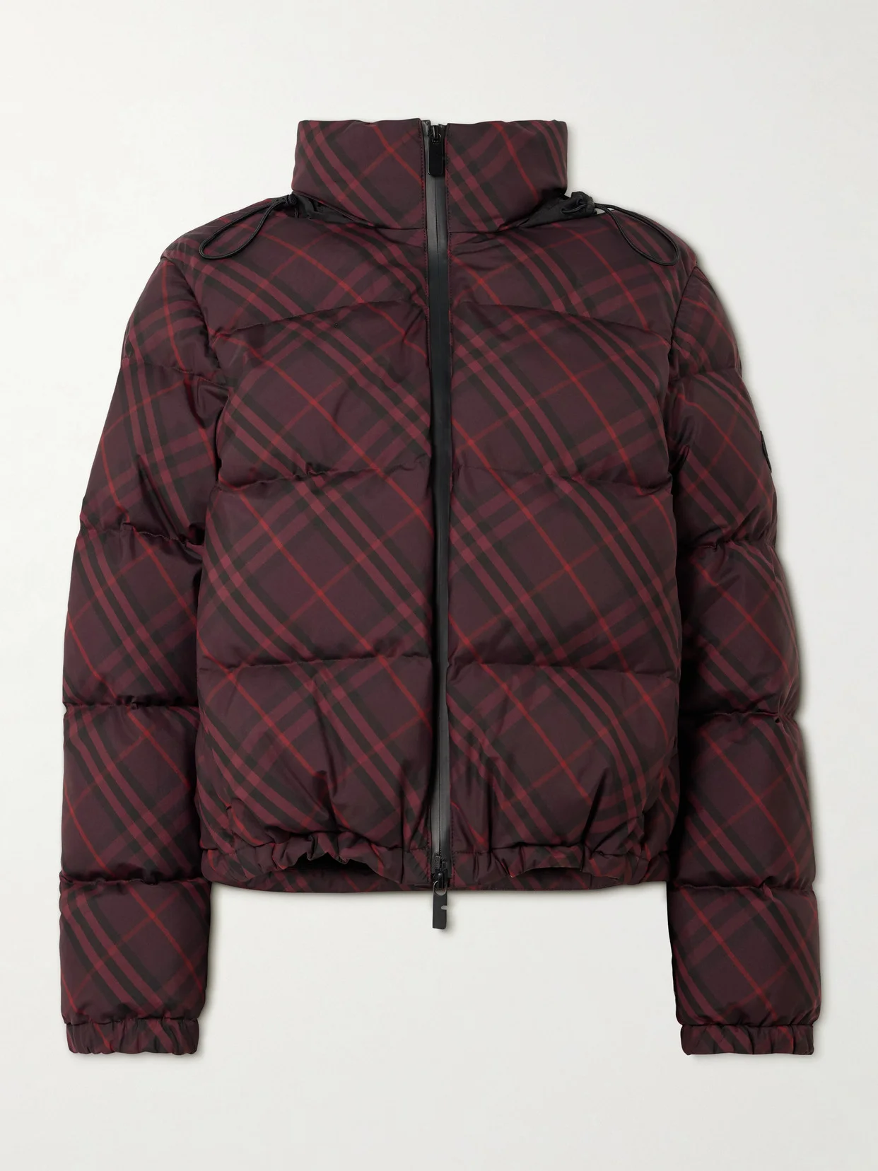 Burberry is always finding new ways to update its iconic check - this jacket is covered in a rich, red version of the pattern. It's made from quilted shell and has a hood that packs down neatly into the collar. The brand's rubber 'Equestrian Knight' patch is appliqued on one sleeve.