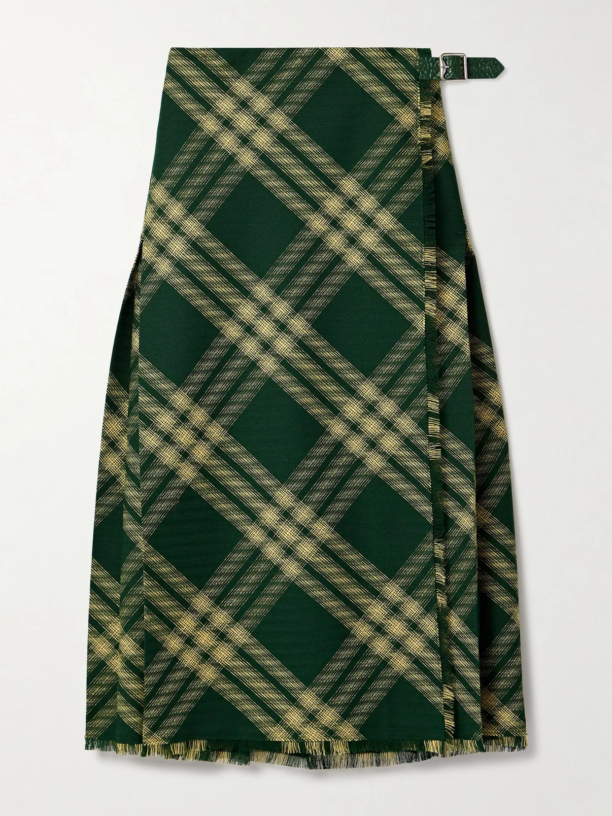 Pleated Checked Wool Midi Wrap Skirt