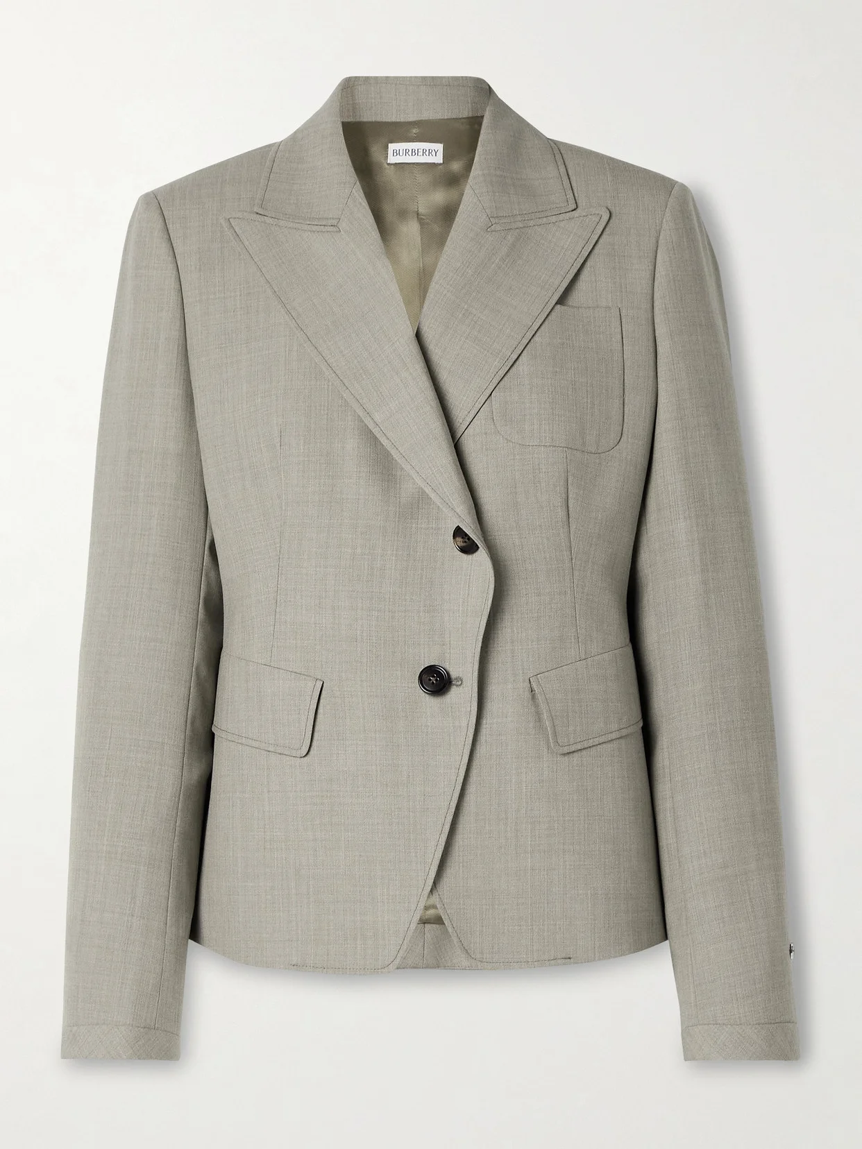 Burberry's blazer is a fresh take on classic suits. It's been tailored in Italy from smooth wool and has asymmetric horn buttons and visible stitching. Complete the set with the matching pants.