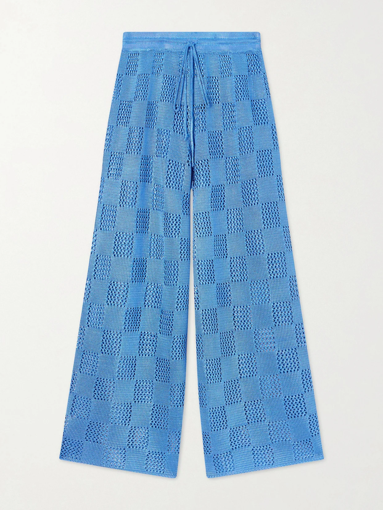 Calle Del Mar's coordinating separates will have you looking so chic and put-together with minimal effort while relaxing on vacation. Crochet-knitted in a subtle checked pattern, these pants have a wide-leg silhouette and an adjustable drawstring waist. Team yours with the matching bra top and cardigan.