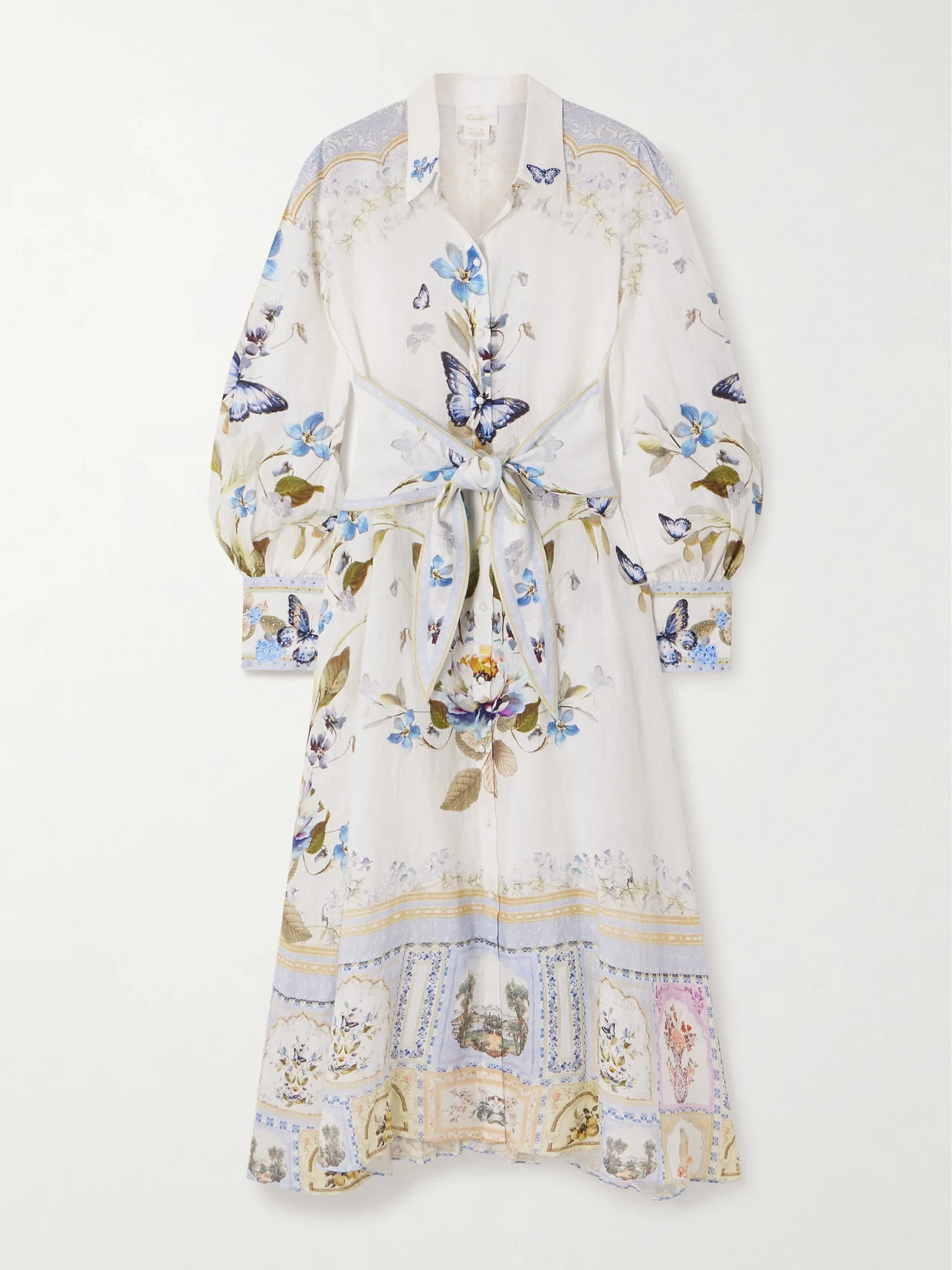 The lush botanical print of Camilla's shirt dress is inspired by the opulent interiors and gardens of Istanbul's Topkapi Palace. It's made from breathable linen and draws in at the waist with a scarf-inspired tie belt. Wear yours with raffia sandals.