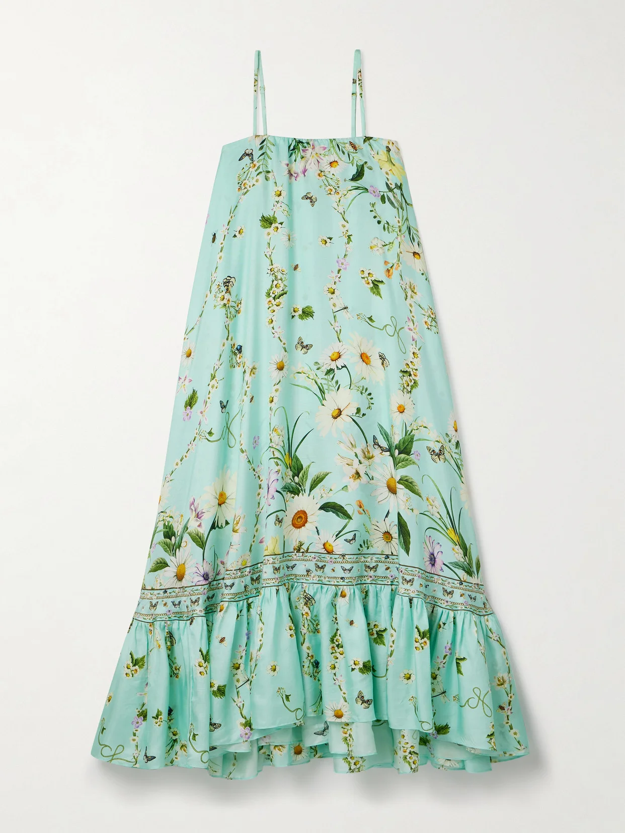 Each of Camilla's prints tells a story - the botanicals decorating this maxi dress capture the free and romantic spirit of the outdoors. Made from silk-twill, it has a loose shape enhanced by a ruffled hem that moves beautifully as you walk. You can adjust or completely remove the straps.