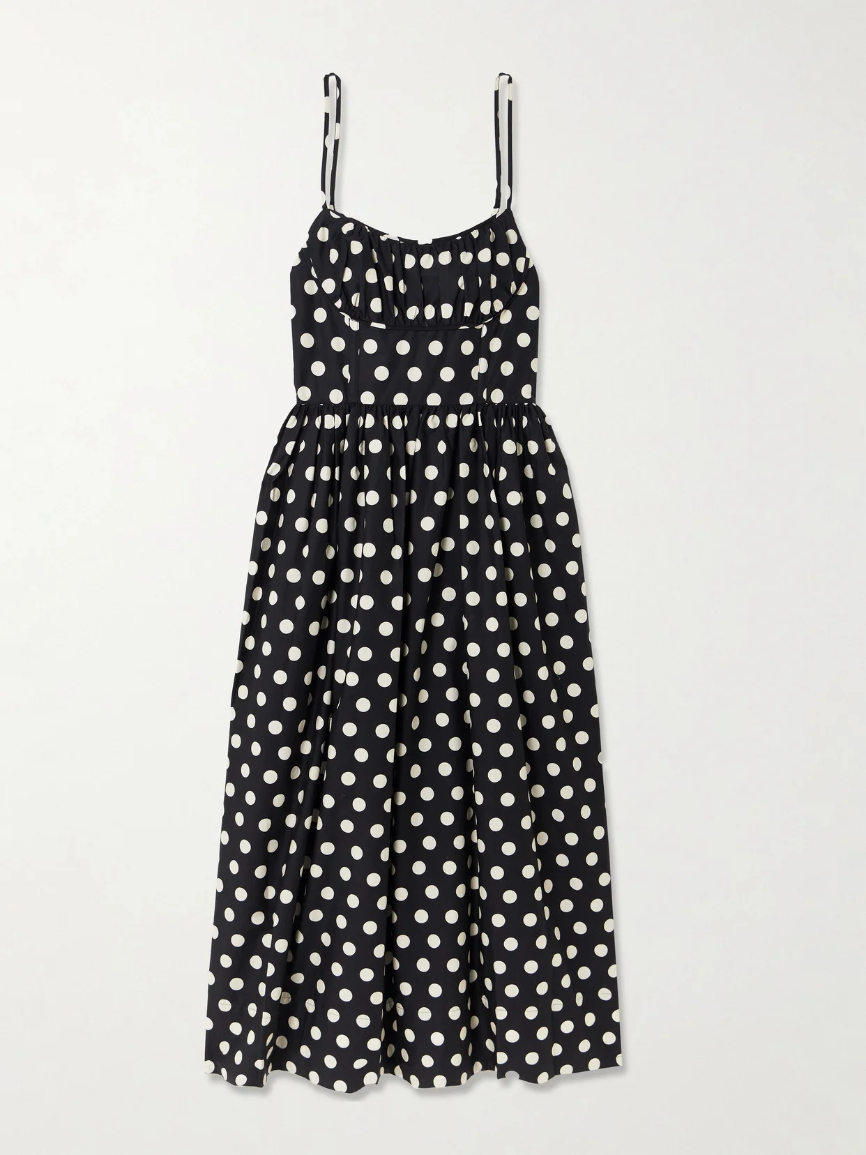The striking polka dots on Cara Cara's 'Alba' dress are an in-house design inspired by vintage archives. Made from cotton-poplin, it fits beautifully along the bodice with light boning, smocking and a gathered bust. Team it simply with ballet flats.