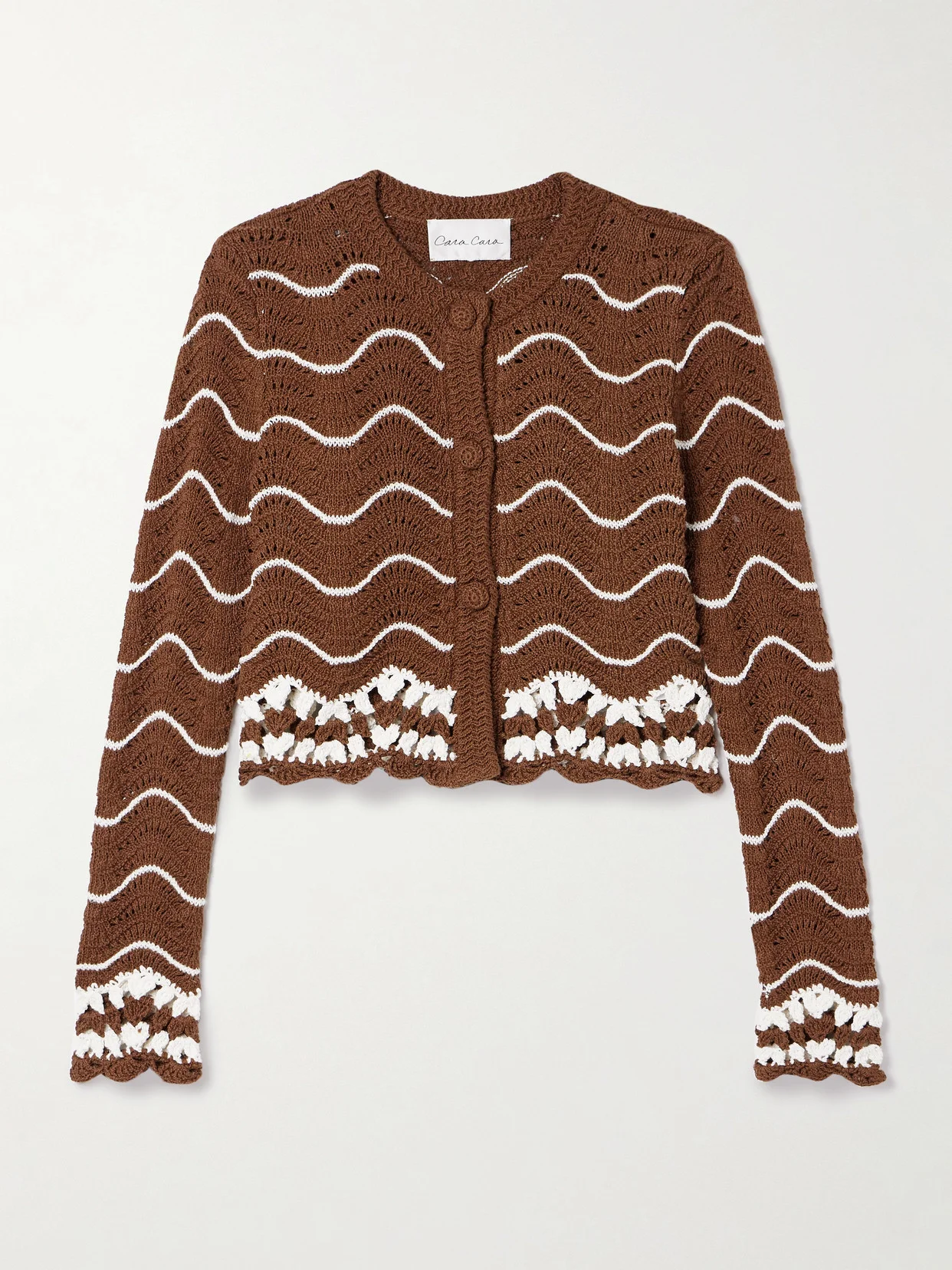 Cara Cara's 'Jolene' cardigan is part of a coordinating set with the matching 'Orel' mini dress. It's knitted from cotton with a wavy striped motif that complements the scalloped edges. Complete your look with sandals and a woven bag.