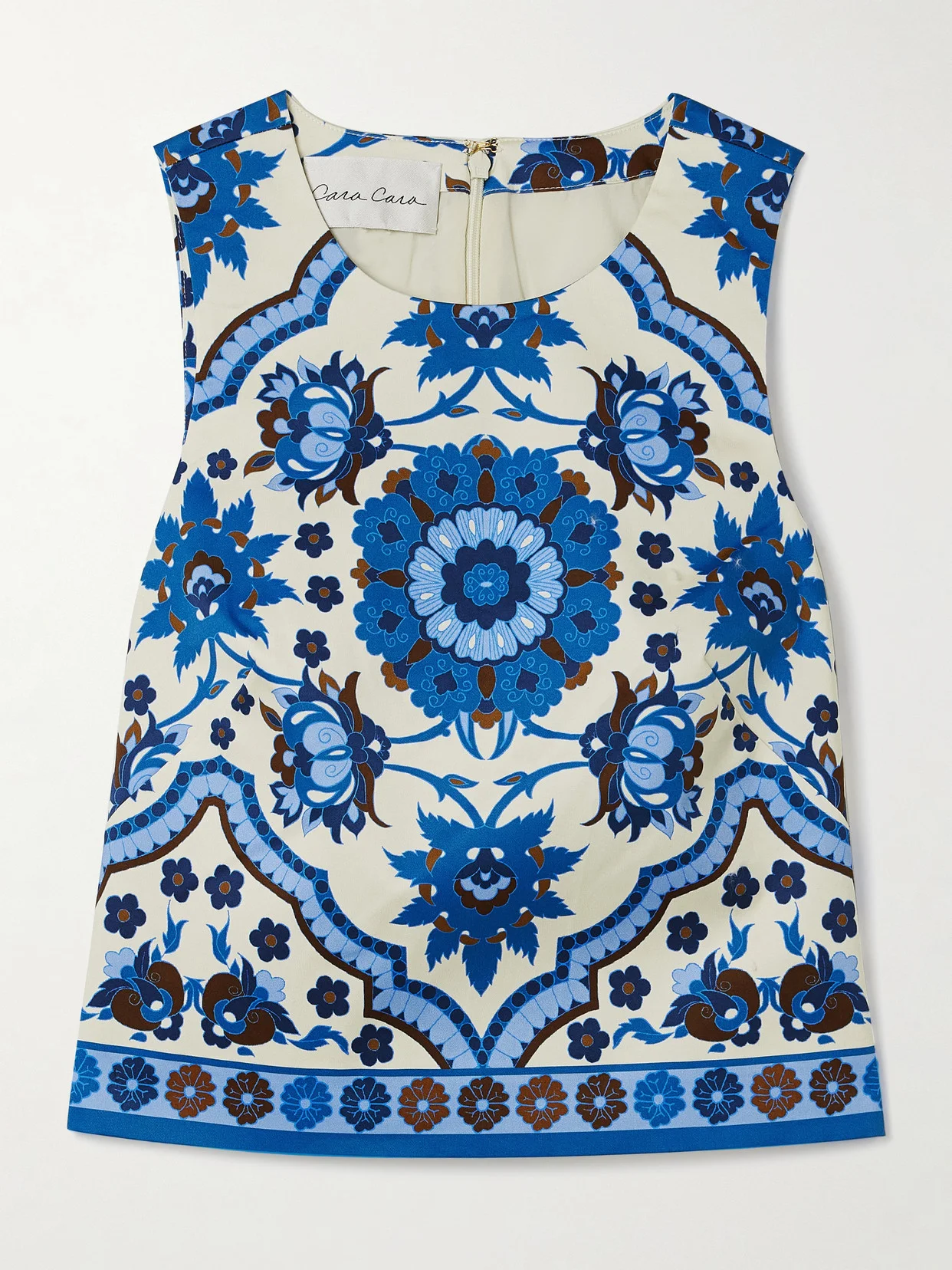 The floral print on Cara Cara's 'Mackenzie' tank is inspired by traditional Mediterranean mosaics. It's made from cotton-blend and has a boxy, cropped shape with darting through the front. Wear yours a set with the matching 'Chrissy' skirt.