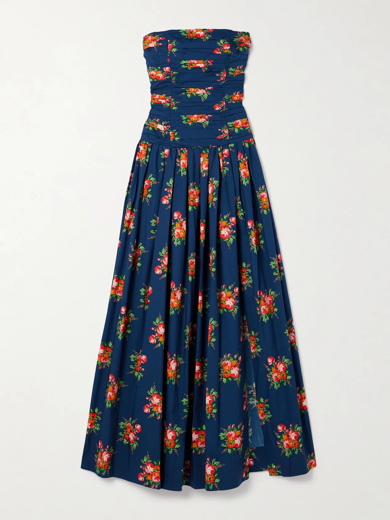 Montreal Strapless Pleated Floral-print Cotton-poplin Maxi Dress