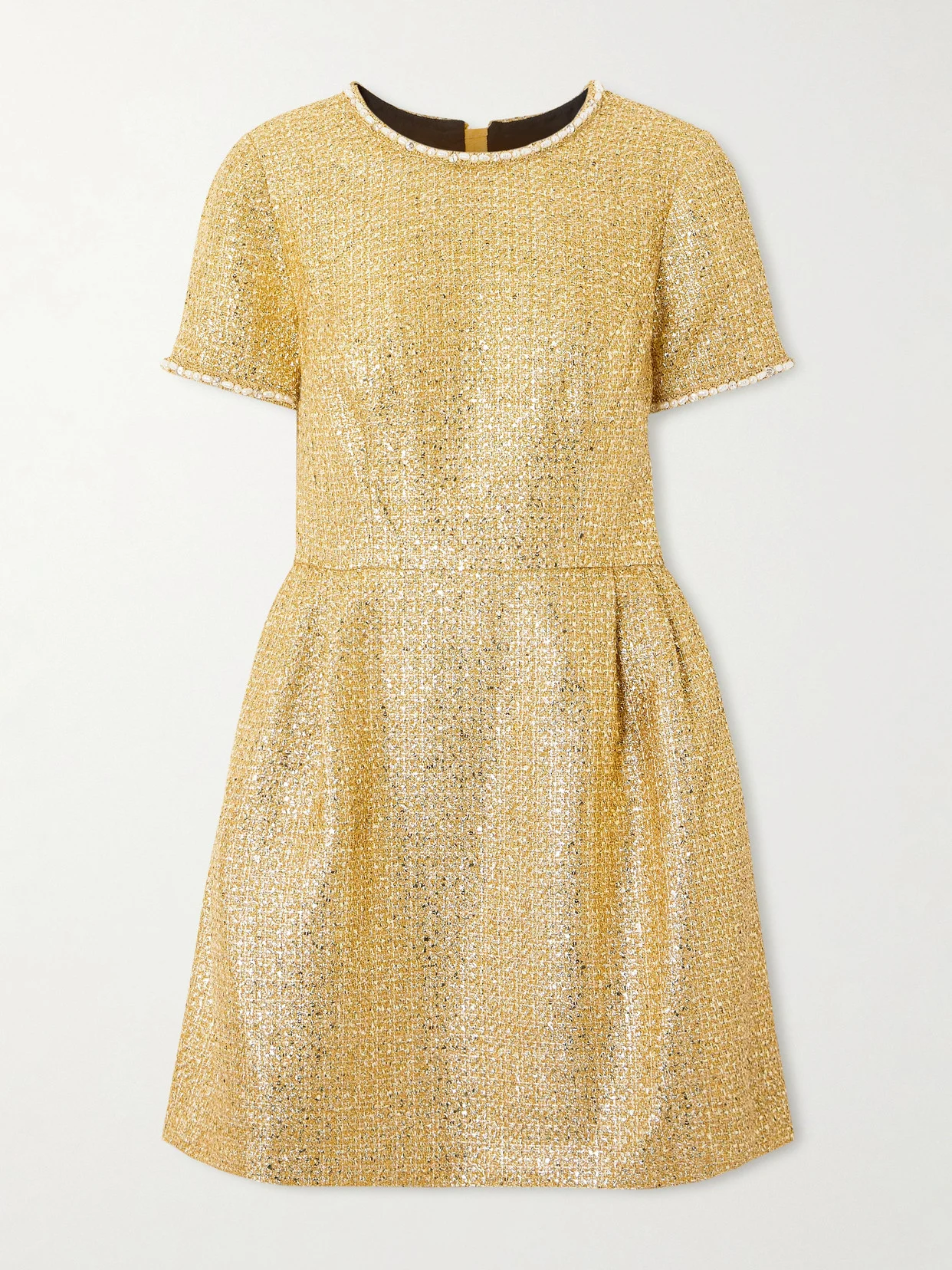 Crystal And Faux Pearl Embellished Metallic Tweed Mini Dress