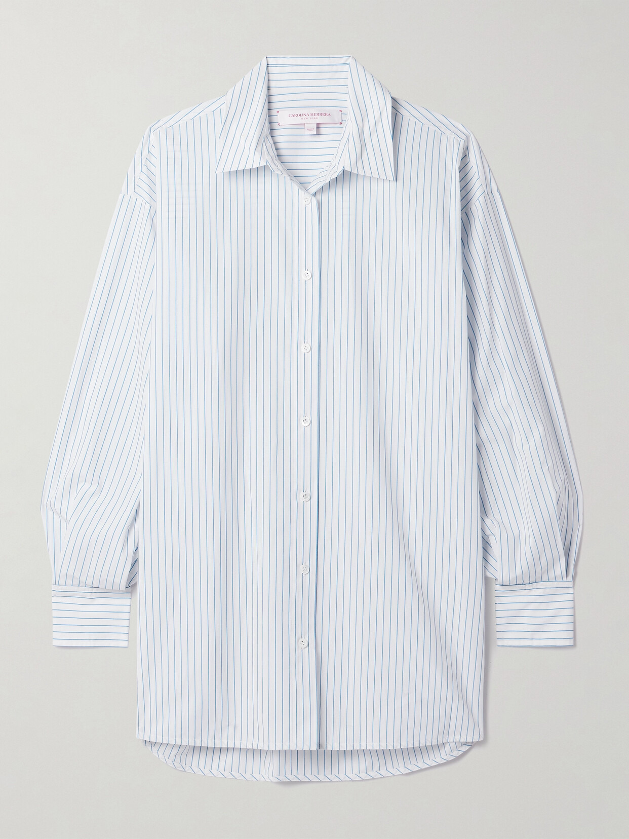 There are so many ways you can style Carolina Herrera's shirt - pair it with classic tailoring, slip it on over a dress, or tuck it into one of the label's beautifully embellished skirts. Made from crisp cotton-poplin, it's patterned with blue pinstripes and has an oversized fit.