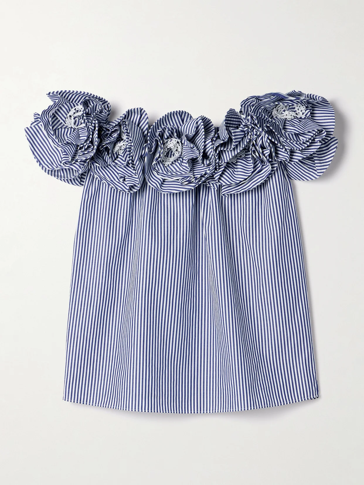 Ruffled Off-the-shoulder Striped Cotton-poplin Top